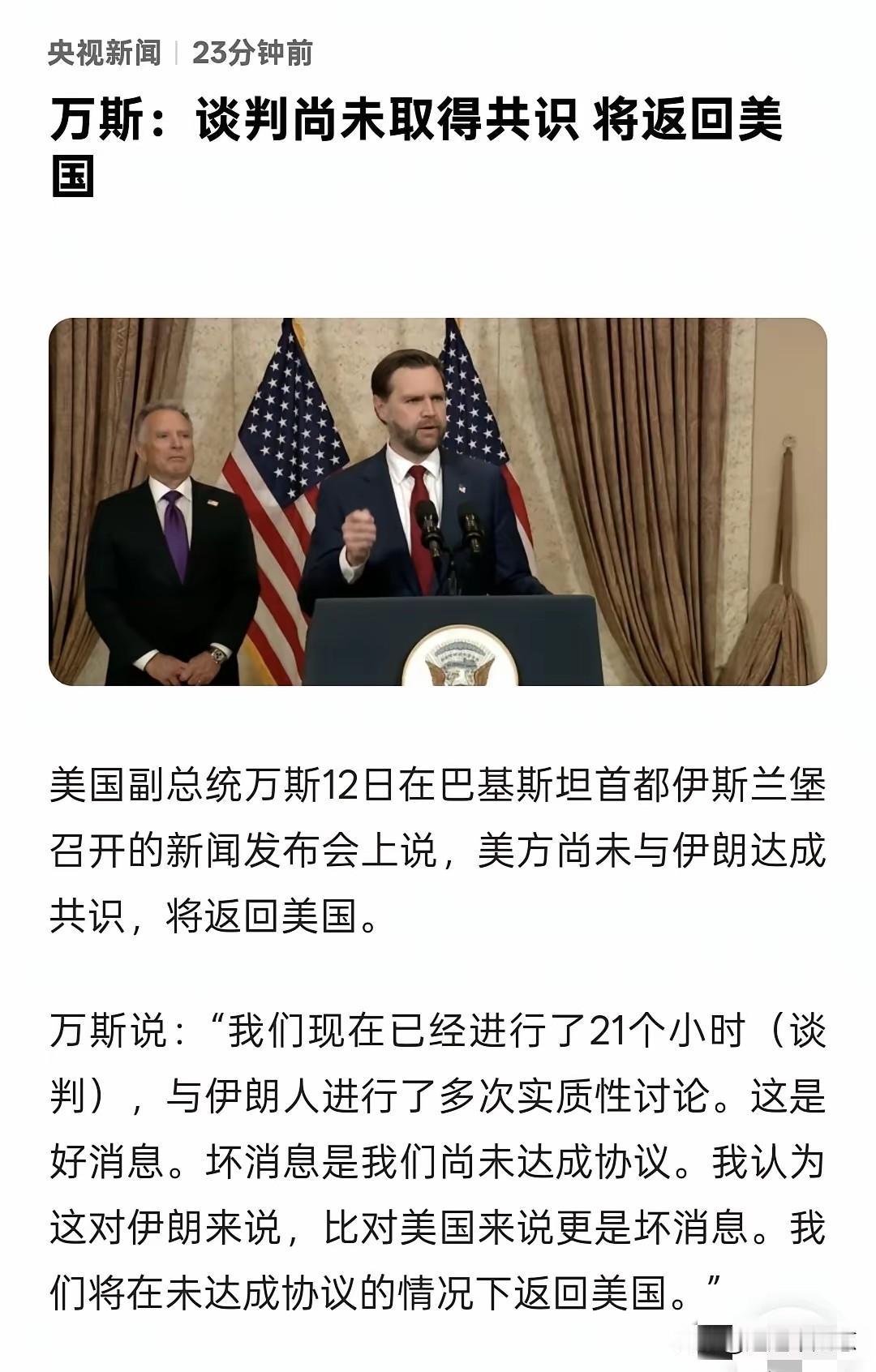 漂亮国和伊朗的和谈,谈崩了!这是情理之中,也是意料之中的事情,以色列回复到将继续打击,这也是意料之中的事情!战争打到现在阶段,想要进行一个缓和,于是就拿着和谈做幌子,其实怎么可能,但凡没有把对方给打趴下打的彻底认输,所有的所谓停战和谈都是满口空话!美国根本就不想谈判,上两轮就说要谈判的,结果就趁机炸死了伊朗领导,两次都是这样,伊朗也不是个傻子,经过两次被骗过后,这一次伊朗想美帝赔偿一万亿美元,解除制裁,返还冻结资产,允许霍尔莫兹海峡收费,允许伊朗拥核,约束以色列的军事行为。看起来像是伊朗包围了美帝!特朗普之前力推的5000亿美元的国防采购预算看来没有理由不通过!伊朗两次被戏耍,大概也是看出了美国毫无诚信,于是他开出的价码也在美国看来根本无法接受!谈崩,谈失败,谈破裂那是必然的结果!伊朗的要求:战争赔偿,海峡收费,继续民用浓缩铀,这在美国看来,每一条都是刺!所谓的谈判,就是给拉满弓的特朗普,一个台阶。未分胜负的美伊是不可能摘到果子的。一句话,战场上打不赢,谈判桌上说什么都没用。