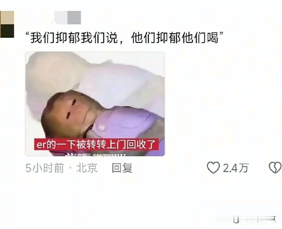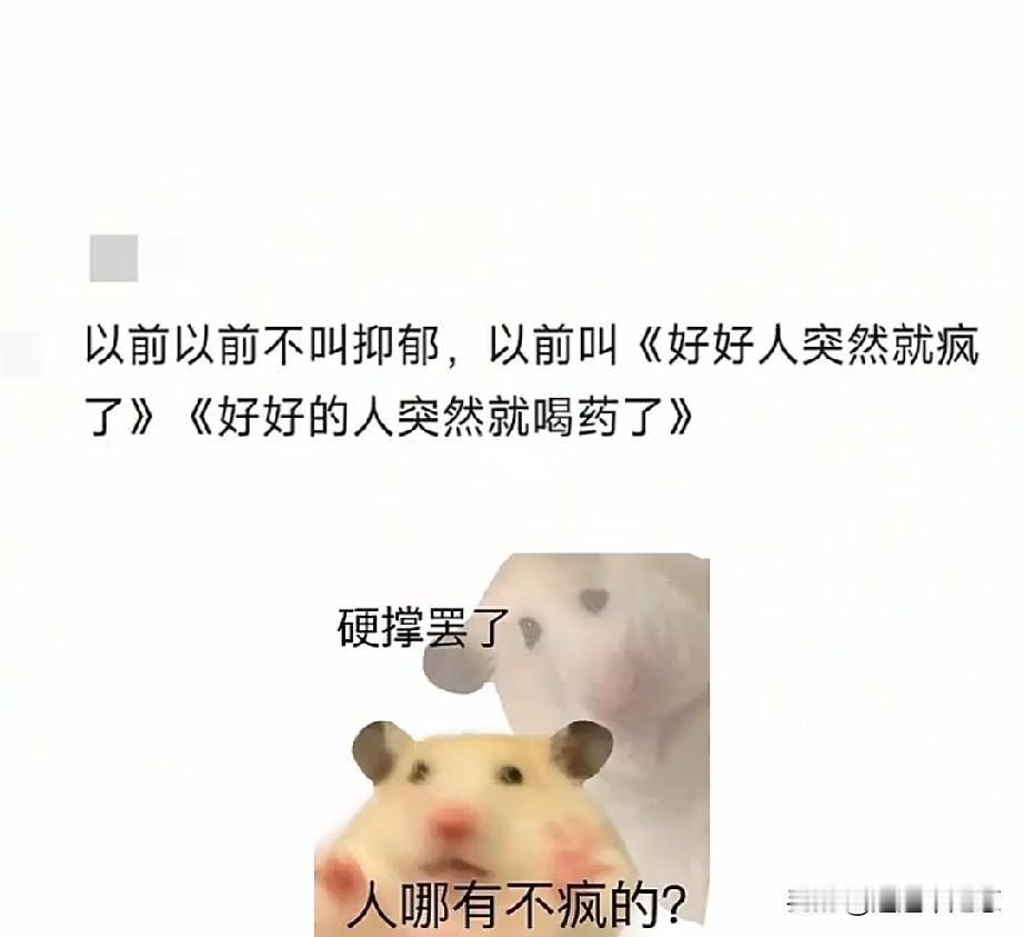 为什么现在的年轻人动不动就抑郁,而老一辈人的却不会啊?呵呵,因为老一辈人以前不叫抑郁,那叫“好一好好的人活着活着就疯了”,或者叫“好好的人突然就喝药了”。难道大家不知道吗?老一辈人就是把敌敌畏给喝停产的。老一辈人抑郁的时候,人家不叫直接喝。所以老祖宗屈原那直接跳水了,你以为是跳水冠军吗?人活着哪有不抑郁的,多多少少都会有抑郁,就看程度多还是程度少。能否自我疗愈或者周围的人给予最大的鼓励和支持。并不是现在的人年轻矫情,而是老一辈人直接用行动来表示,要嘛硬撑,要嘛过不下去就噶呗。这么看来现在年轻人其实抗击打能力更强啊。