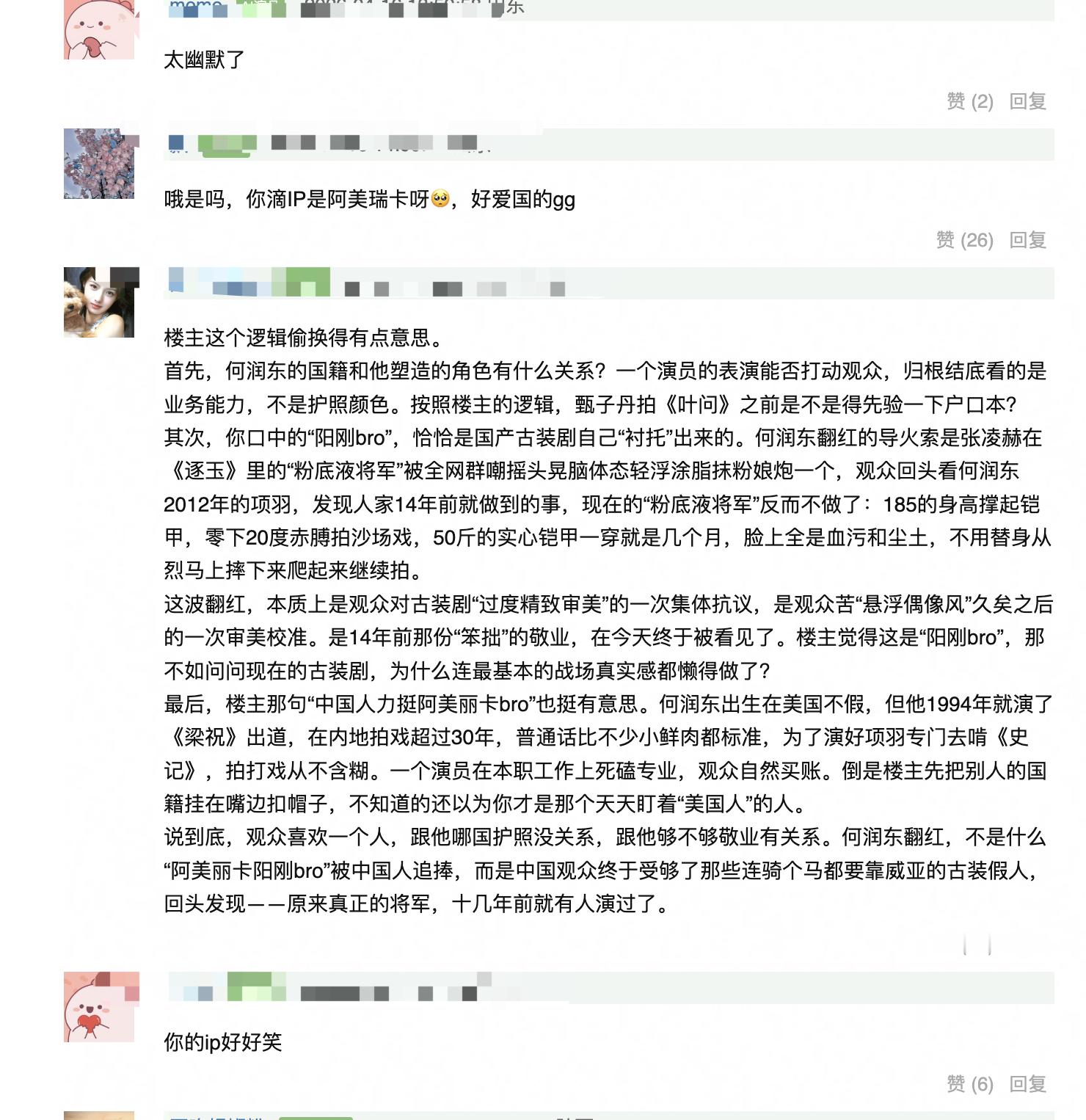 网友说何润东作为美国籍的翻红和红利真的蛮好笑的,目前评论已翻车