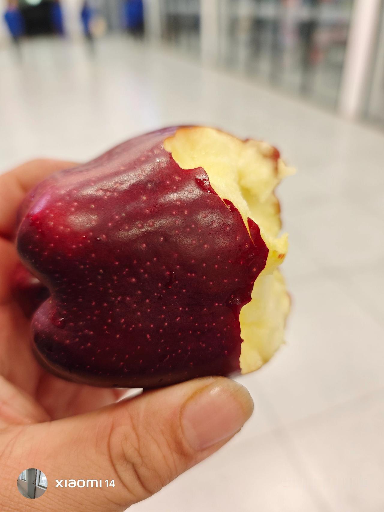 这个苹果感觉和刚从树上摘下来的一样,很硬,果肉很硬,没有什么甜味,也没有什么别的