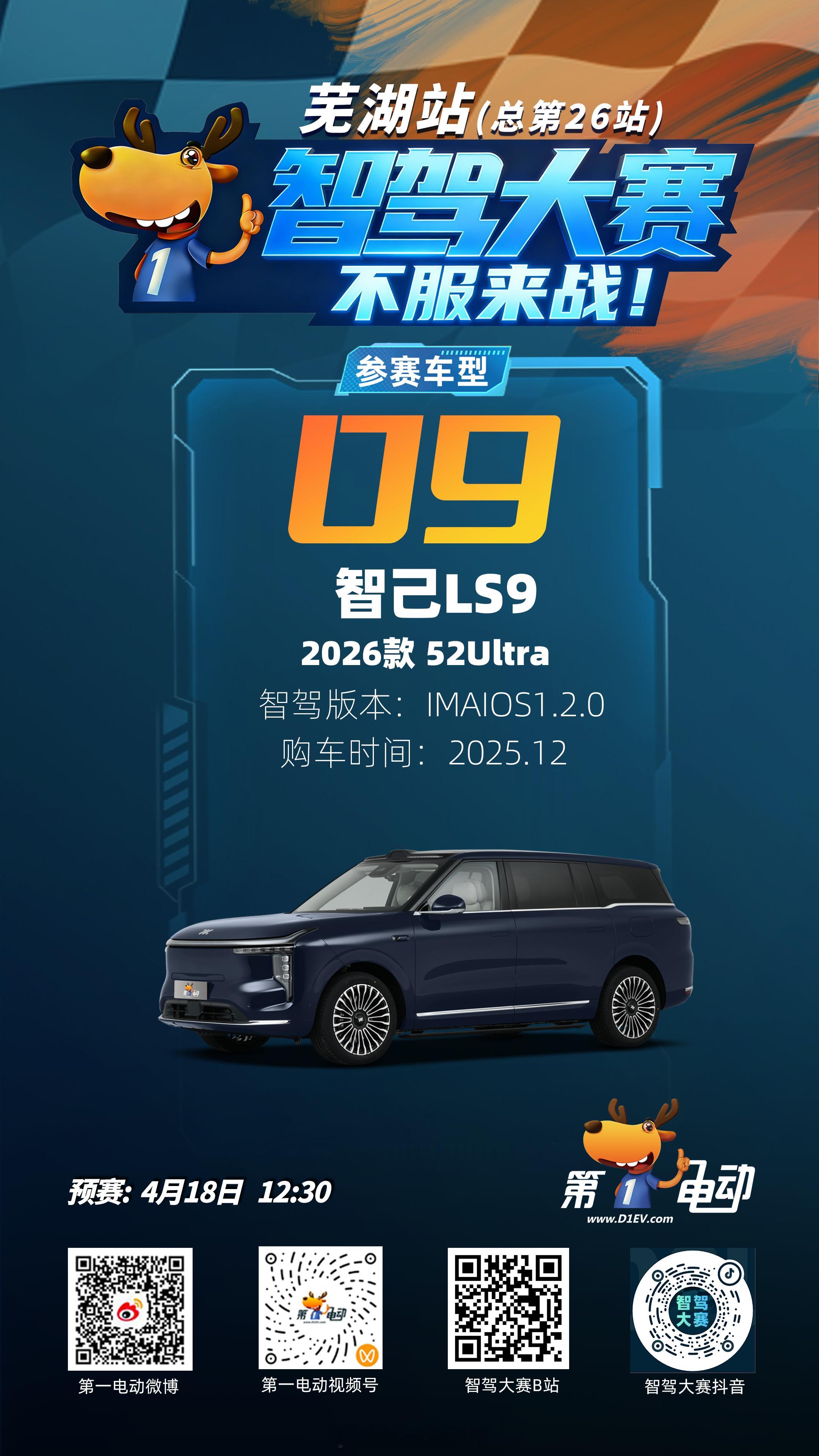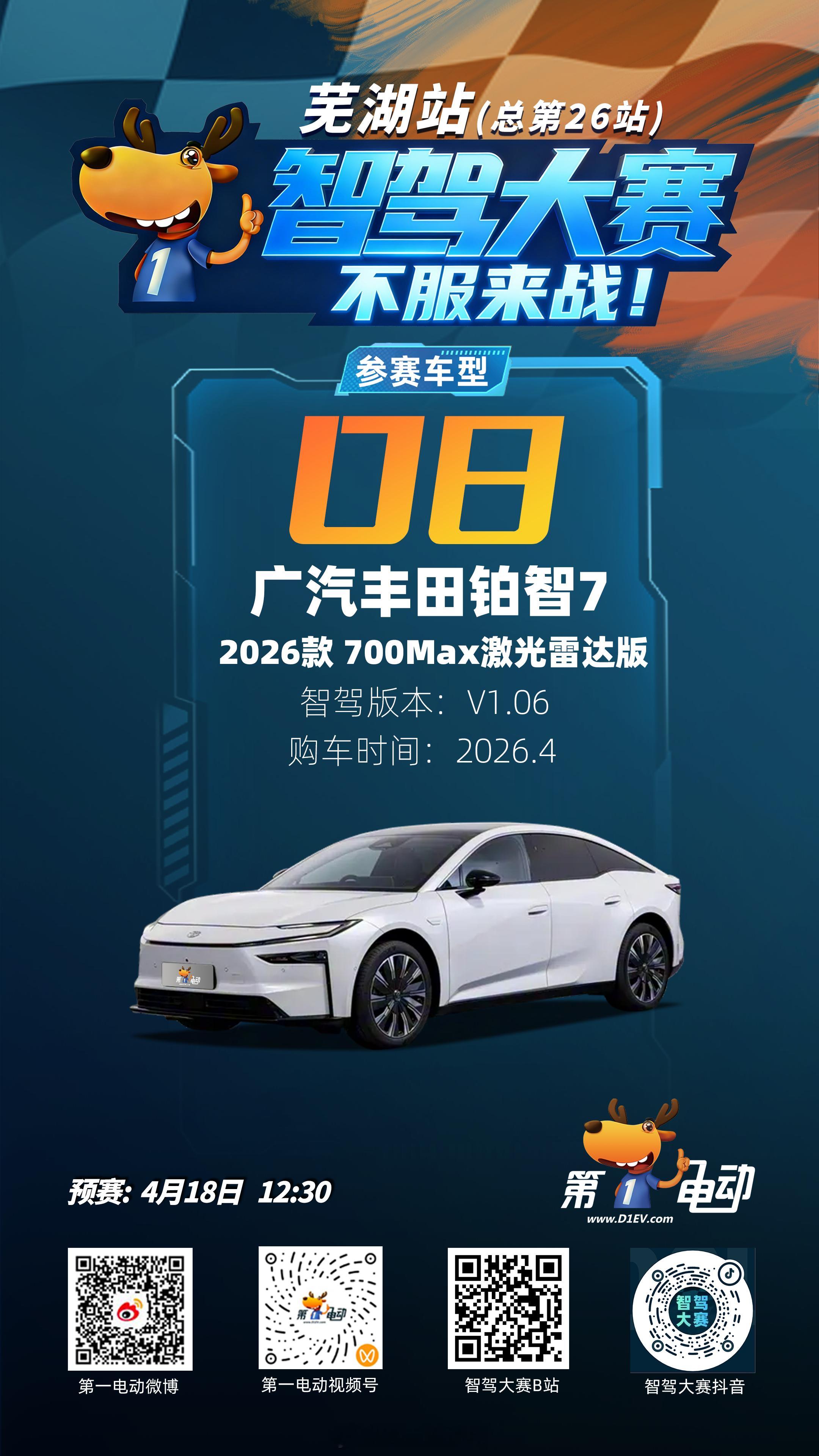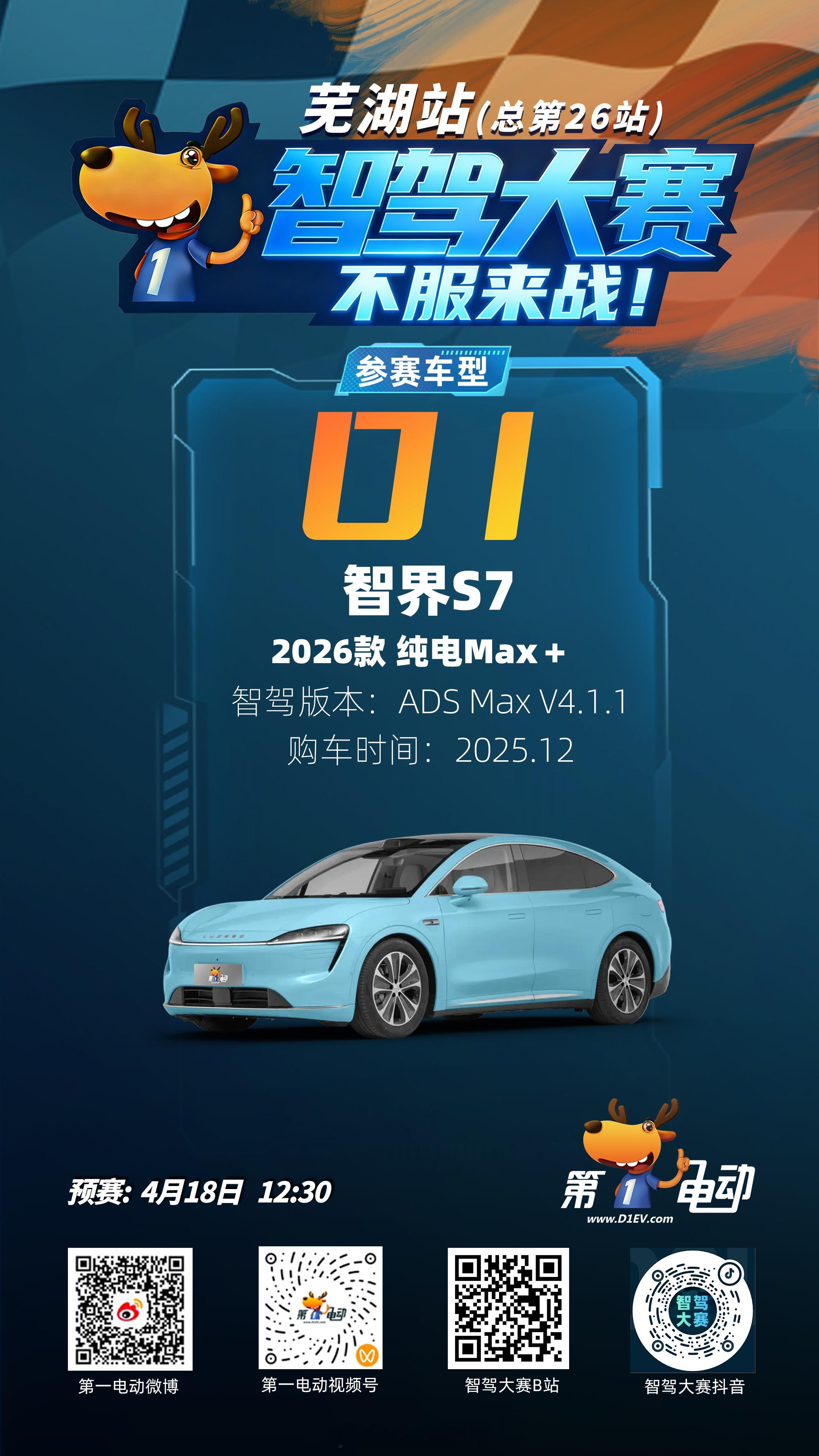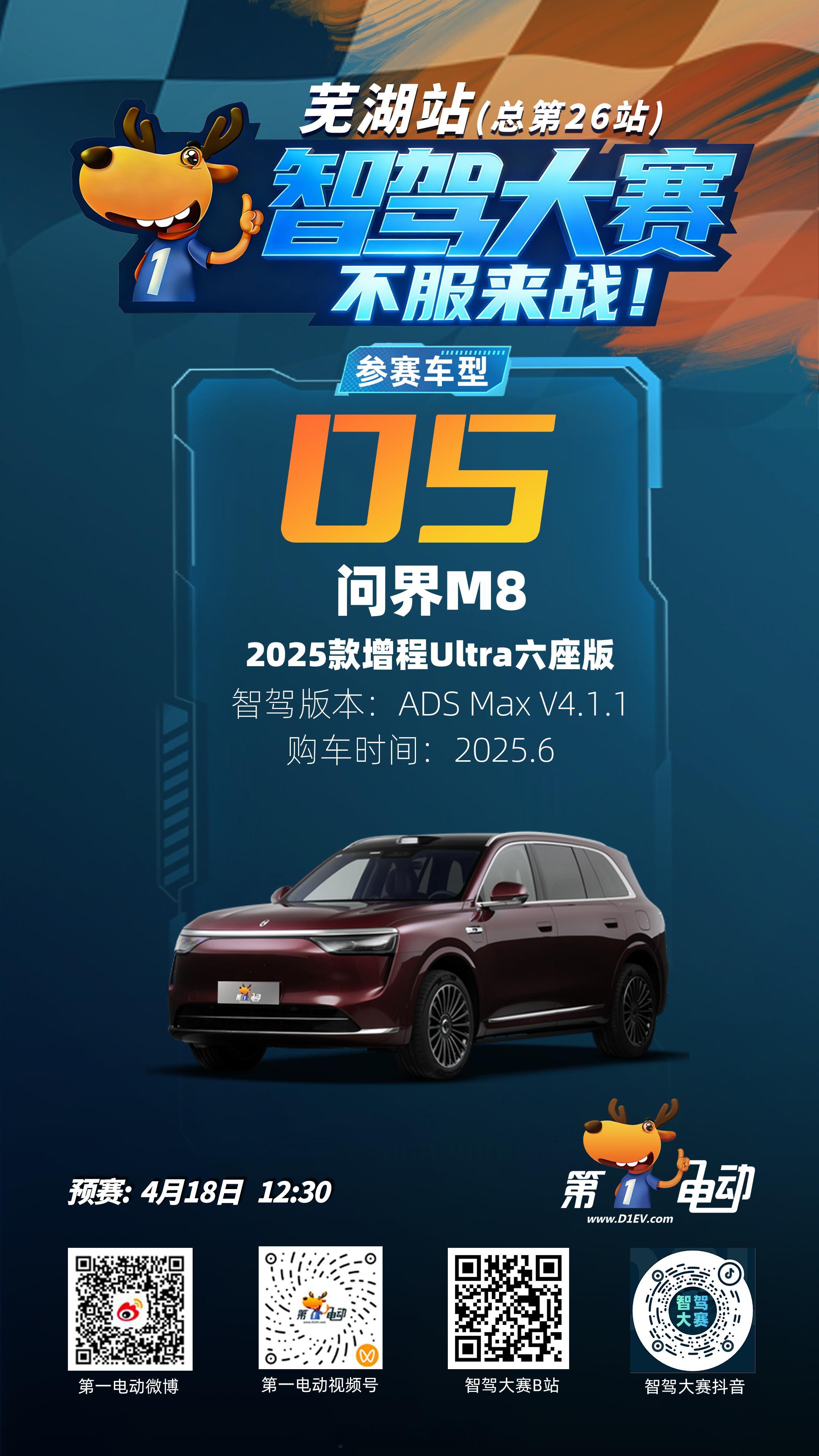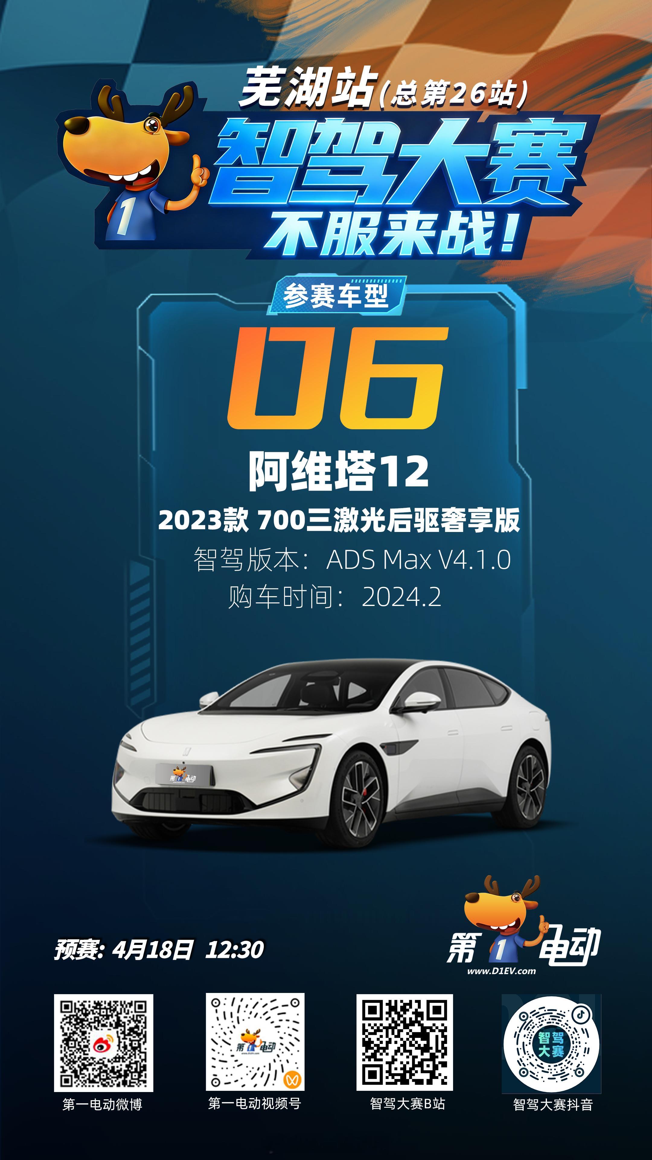 ⏰ 直播锁定:预赛 4月18日 12:30 📺 直播平台:第一电动 微博/视频号;智驾大赛 B站/抖音Momenta系vs华系预赛车型全阵容