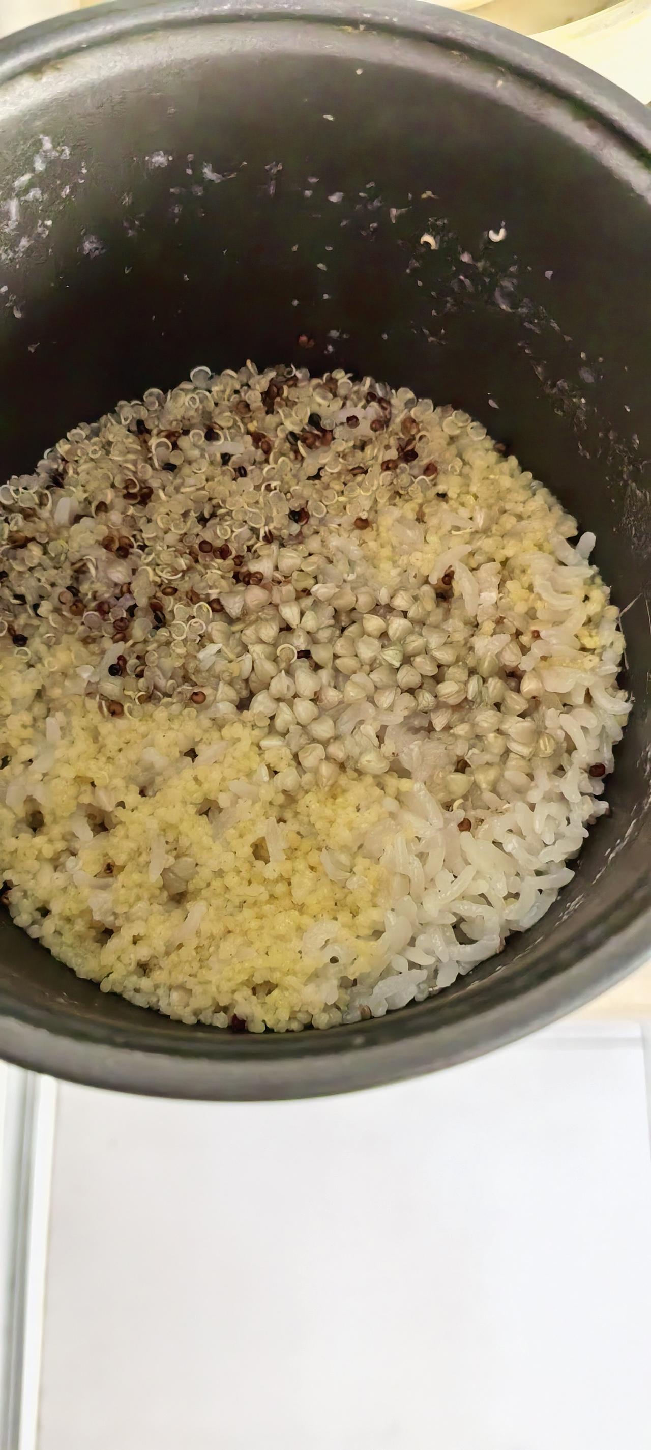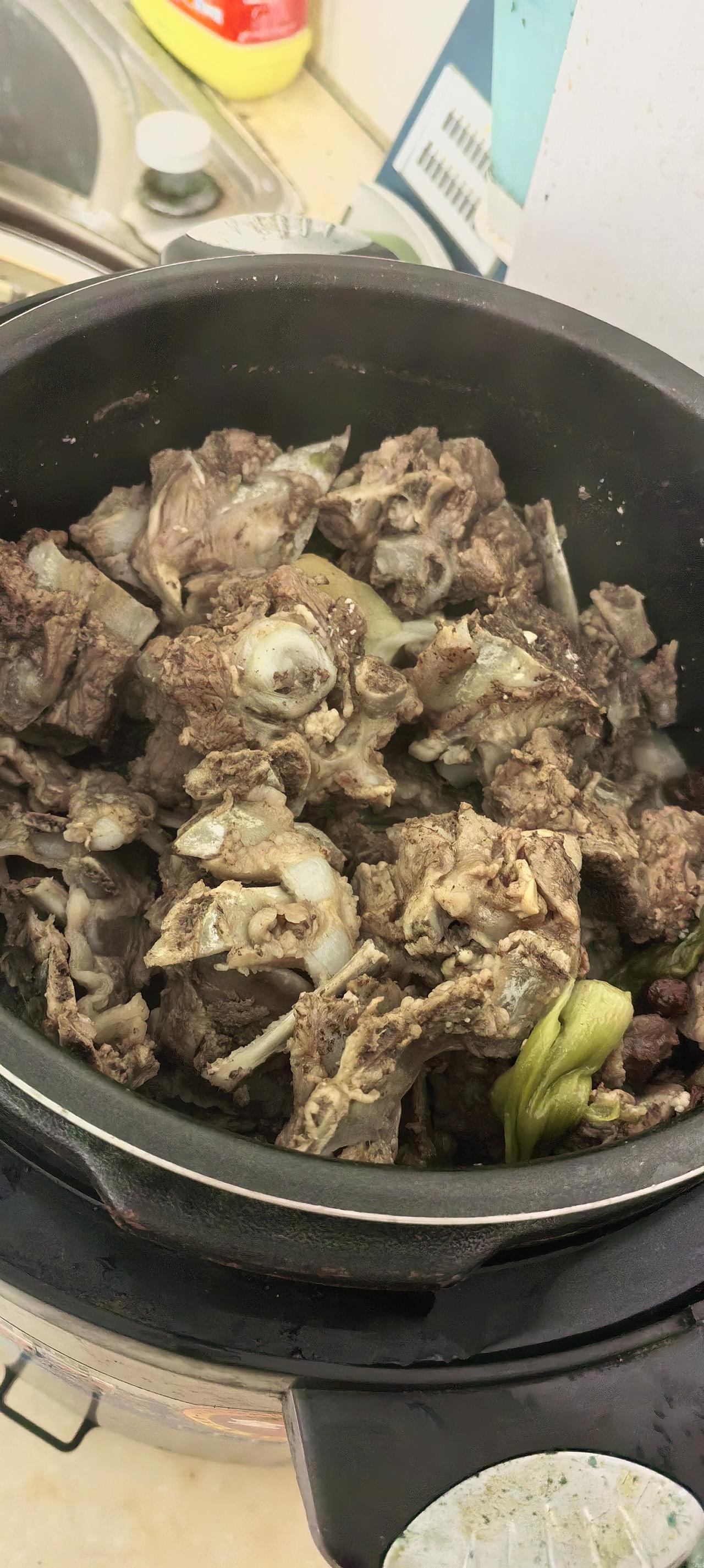 回家浸泡焯水,只放了葱姜八角花椒,炖一个半小时,配上杂粮饭,吃肉喝汤。