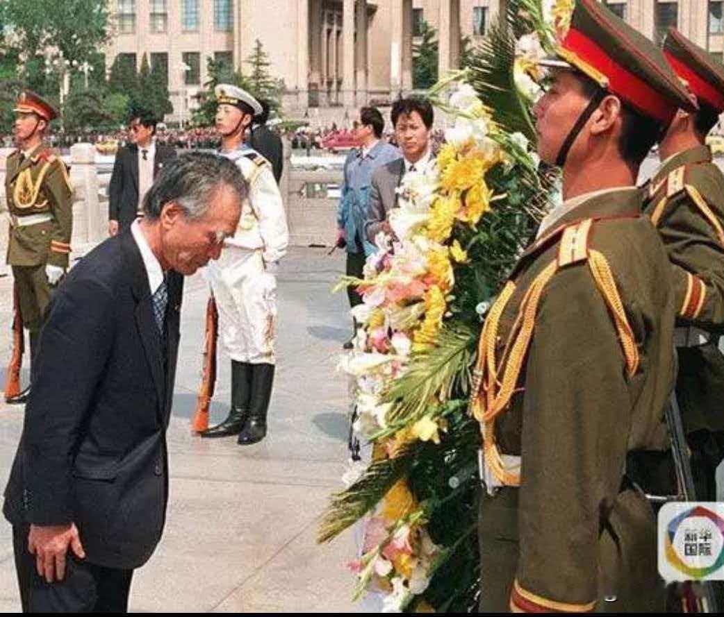 我查了资料,日本曾经有七位首相访华时向人民英雄纪念碑献过花圈。