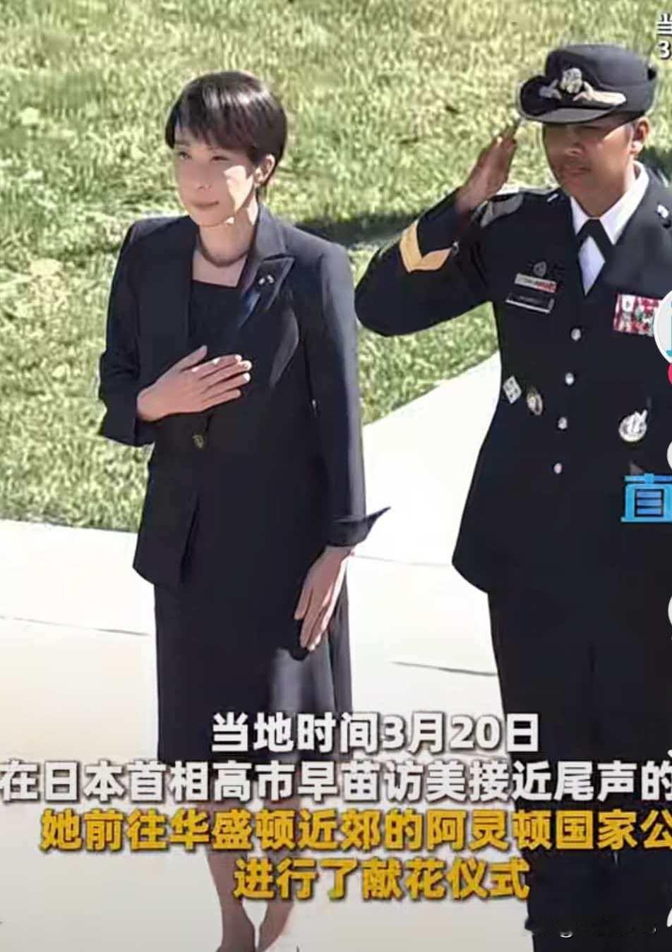 新闻报道,3月20日,高市早苗在美国阿灵顿国家公墓,向美国士兵墓前致敬并献花,公墓纪念包括击败并占领过日本的美军士兵。