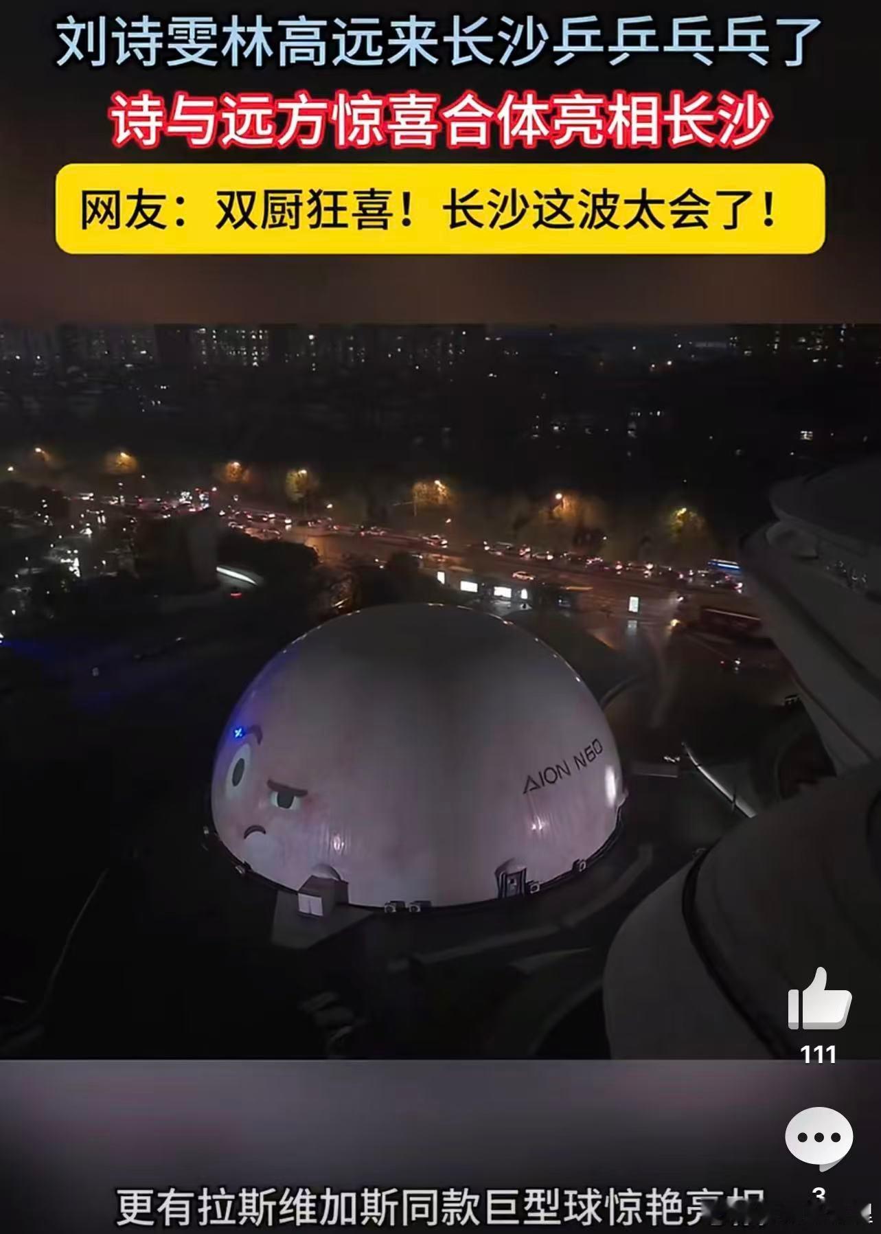 刘诗雯林高远来长沙乒乒乓乓了诗与远方惊喜现身长沙巨型半圆球 梦幻联动谁的DNA动了!小枣和远哥空降长沙巨型半圆球,挥拍的瞬间满是鲜活气,这场和乒乓球的双向奔赴,直接把长沙的运动氛围拉到满格!