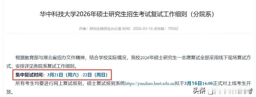 当然,对于华科的考生,过了复试线并不代表录取,还要认真准备复试,并且也要做好复试没过后的调剂准备。但是,过了复试,至少我们已经成功了一大半。那些拿个别学校个别专业说事的人,你就别再贩卖焦虑了,考生们一关一关的过,压力已经很大了。2026研究生考试 华中科技大学