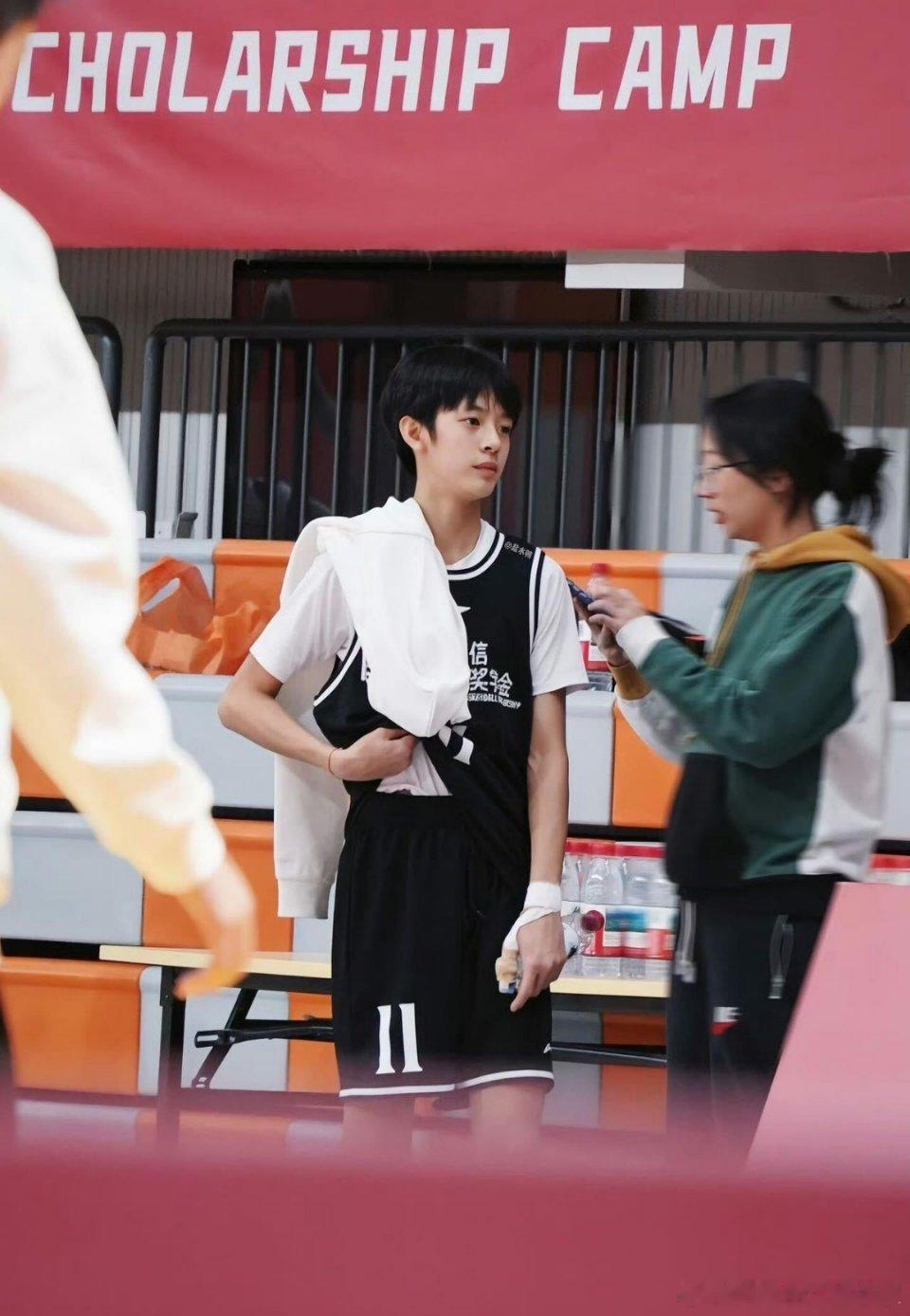 邓超在儿子的颜值里起破坏作用谁能懂!就是说这五官这脸型真是跟着爸妈刻的而且他的腿真的长,小头小脸,看着很淡定,眼神聪慧。