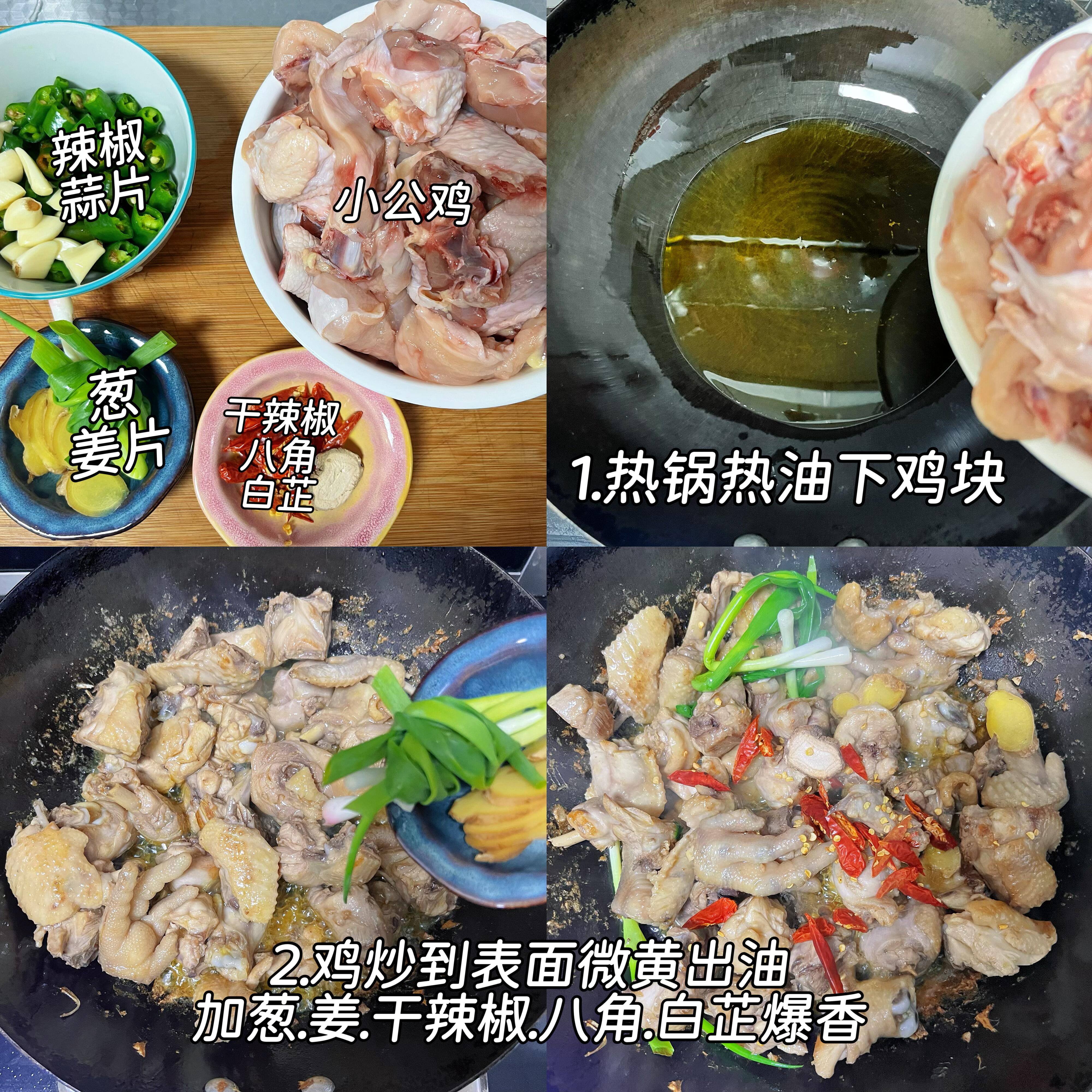 1️⃣ 鸡块处理干净,沥干水分,热锅倒少许油,放入鸡块翻炒,直到表面金黄出油,逼出多余油脂(这样吃着不腻)
