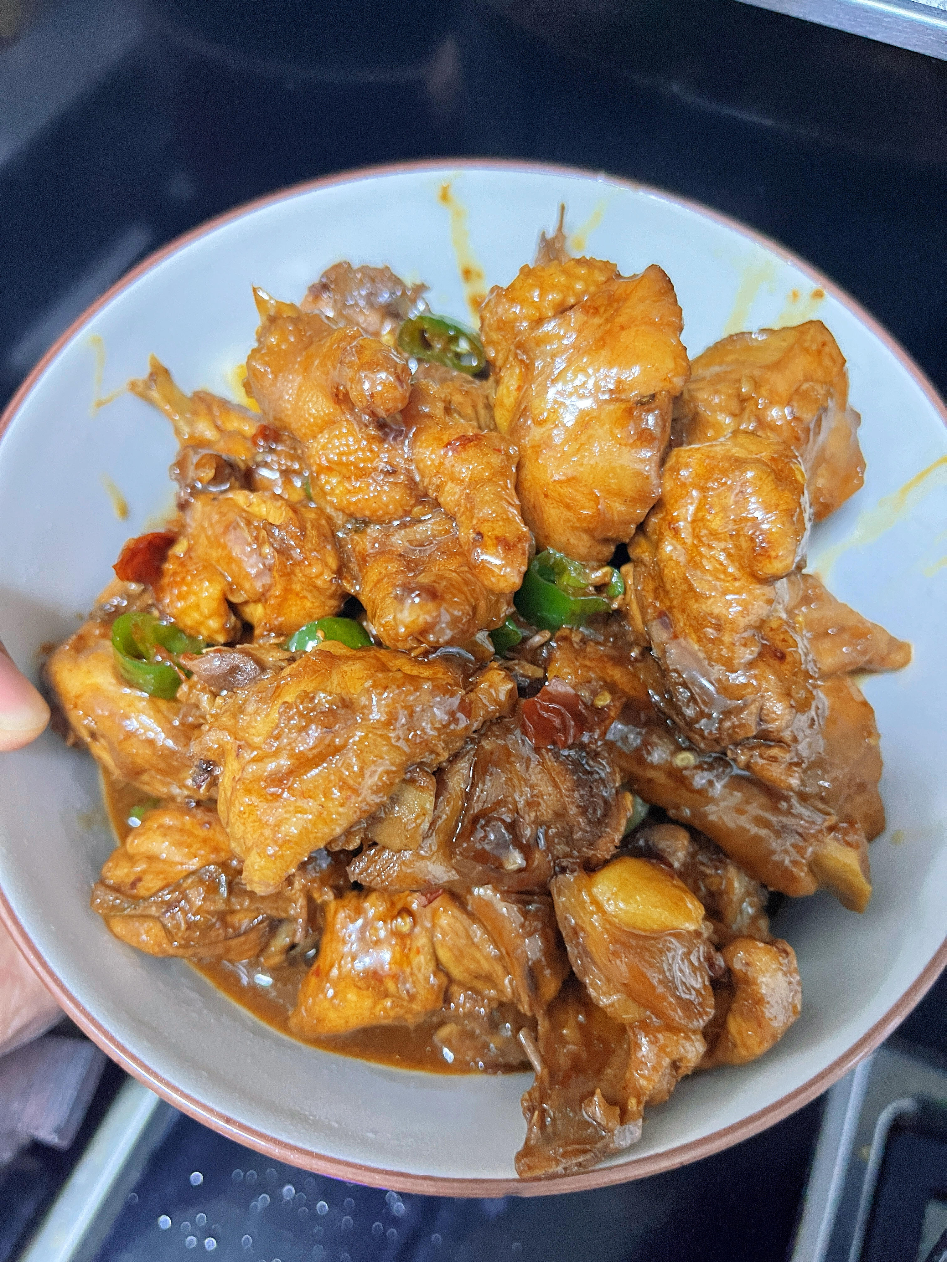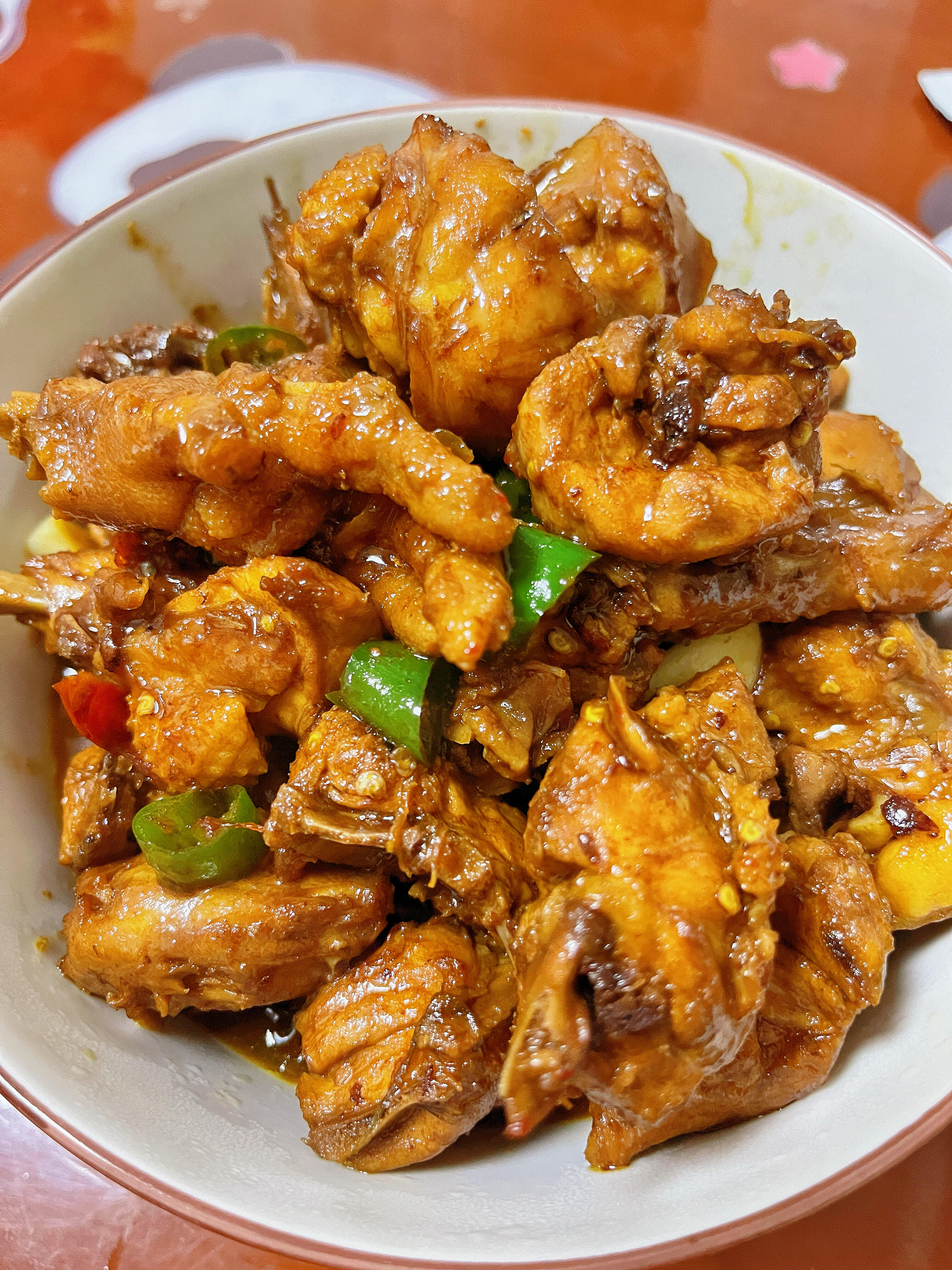 鸡肉紧实不柴,咬一口全是肉香,裹上红亮浓稠的酱汁,咸香中带着一丝回甘,拌米饭我能直接炫三大碗,连汤汁都舍不得浪费!