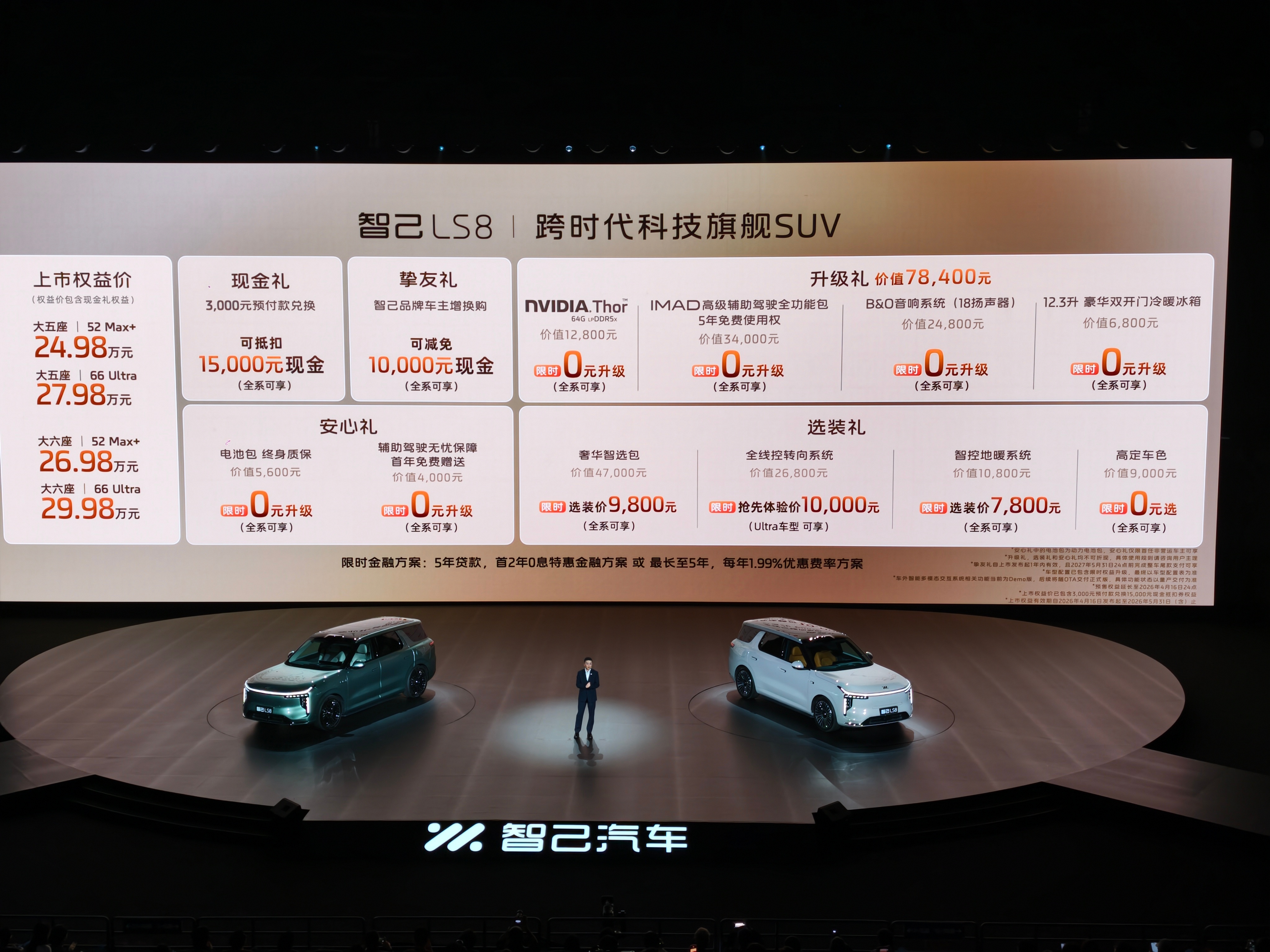 智己LS8震撼上市24.98万起太爆炸了,全系做到了30万以下,而且主卖五座车型顶配只要27.98万!!!还送一年智驾险!!!