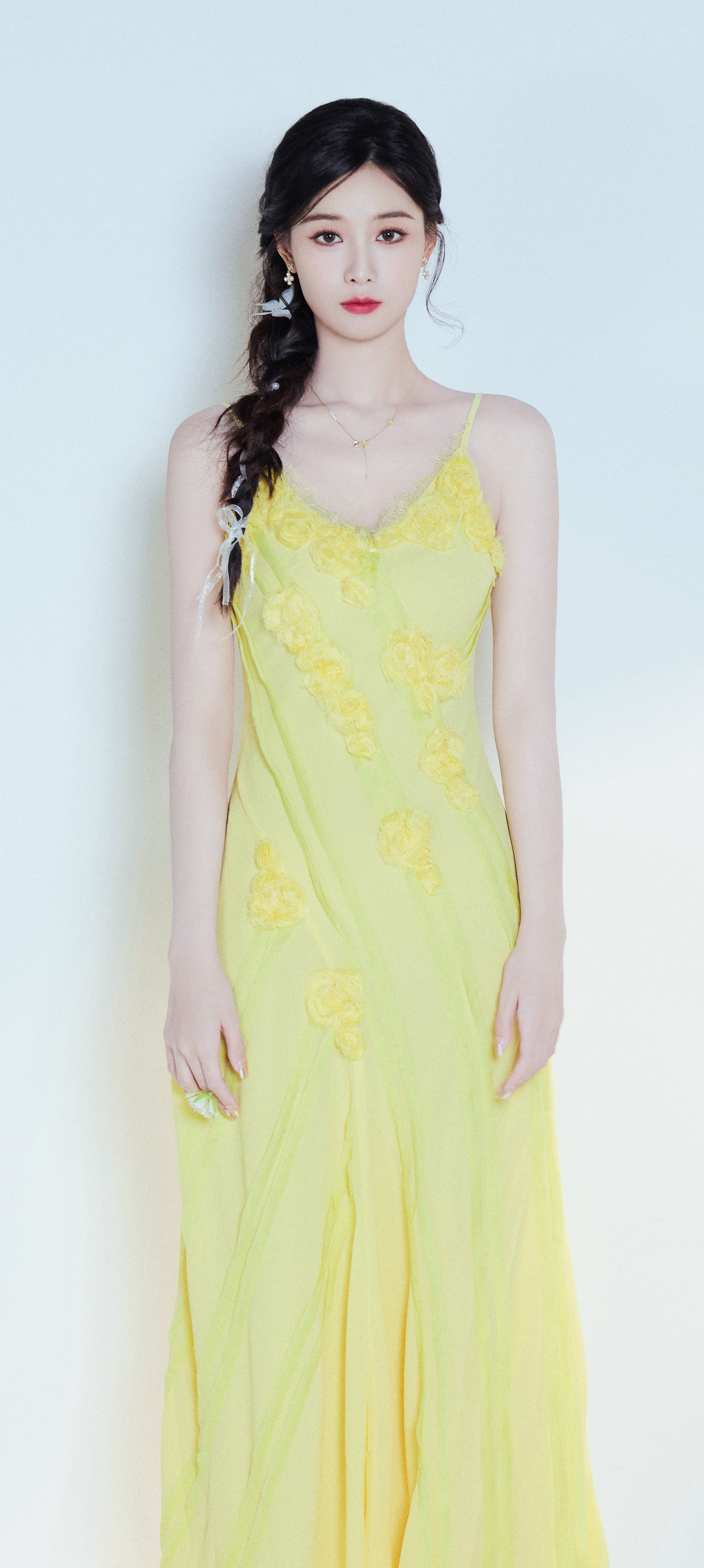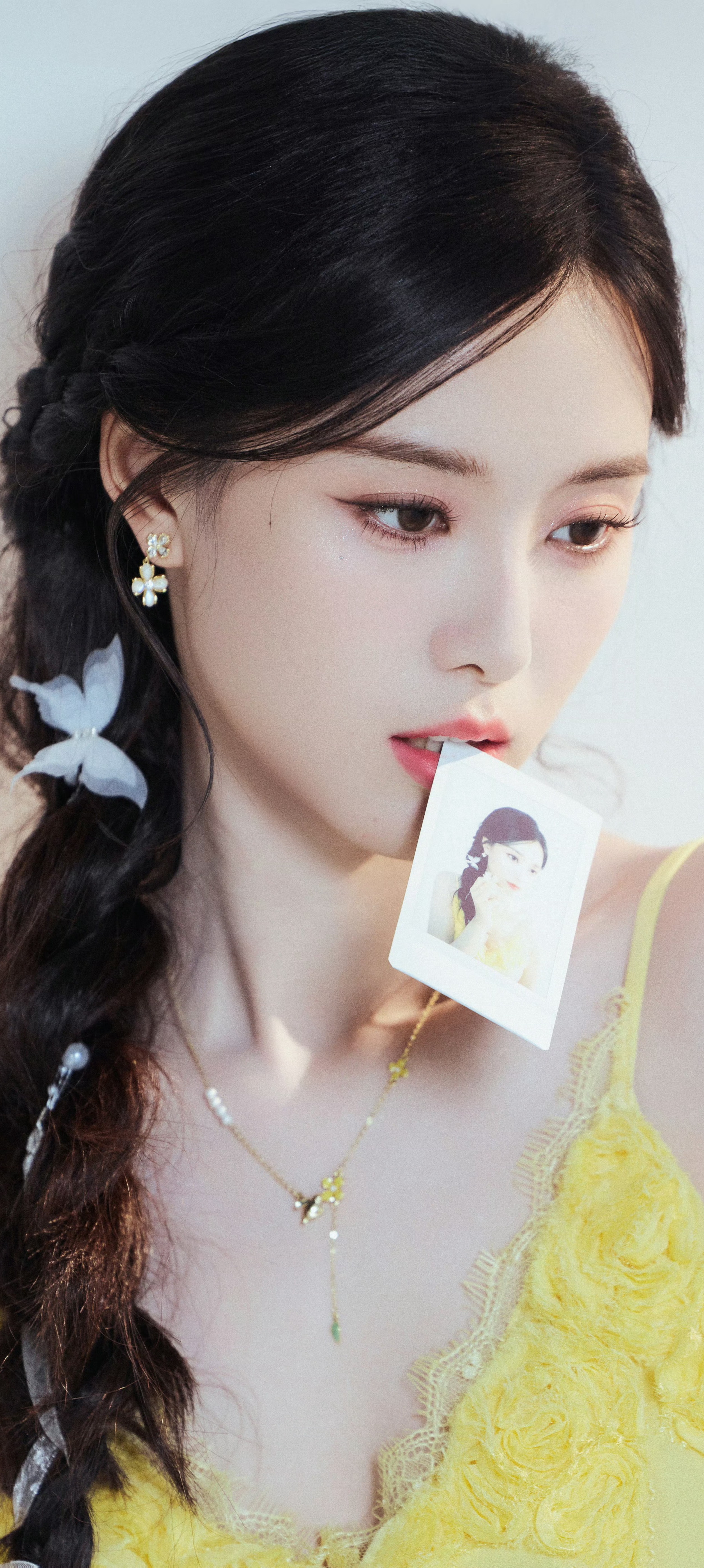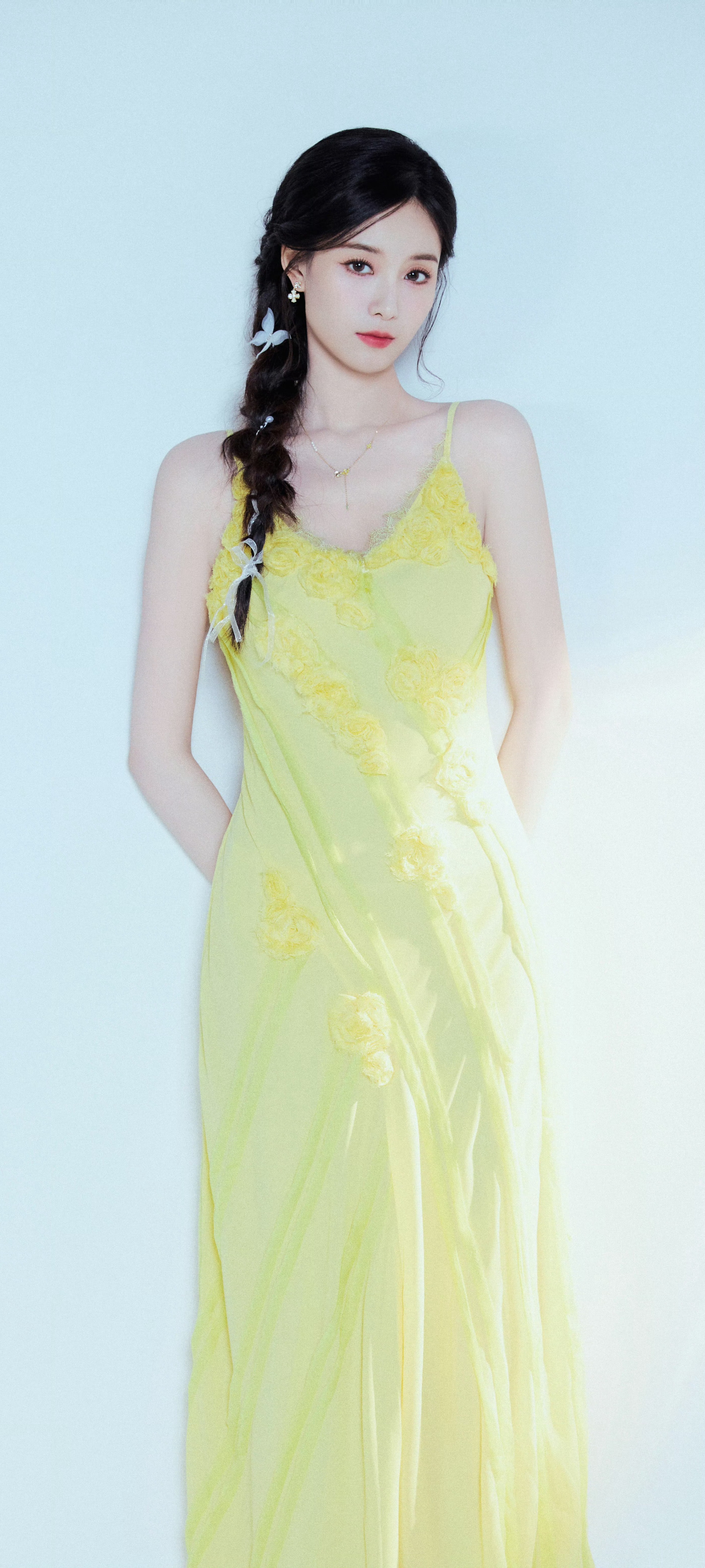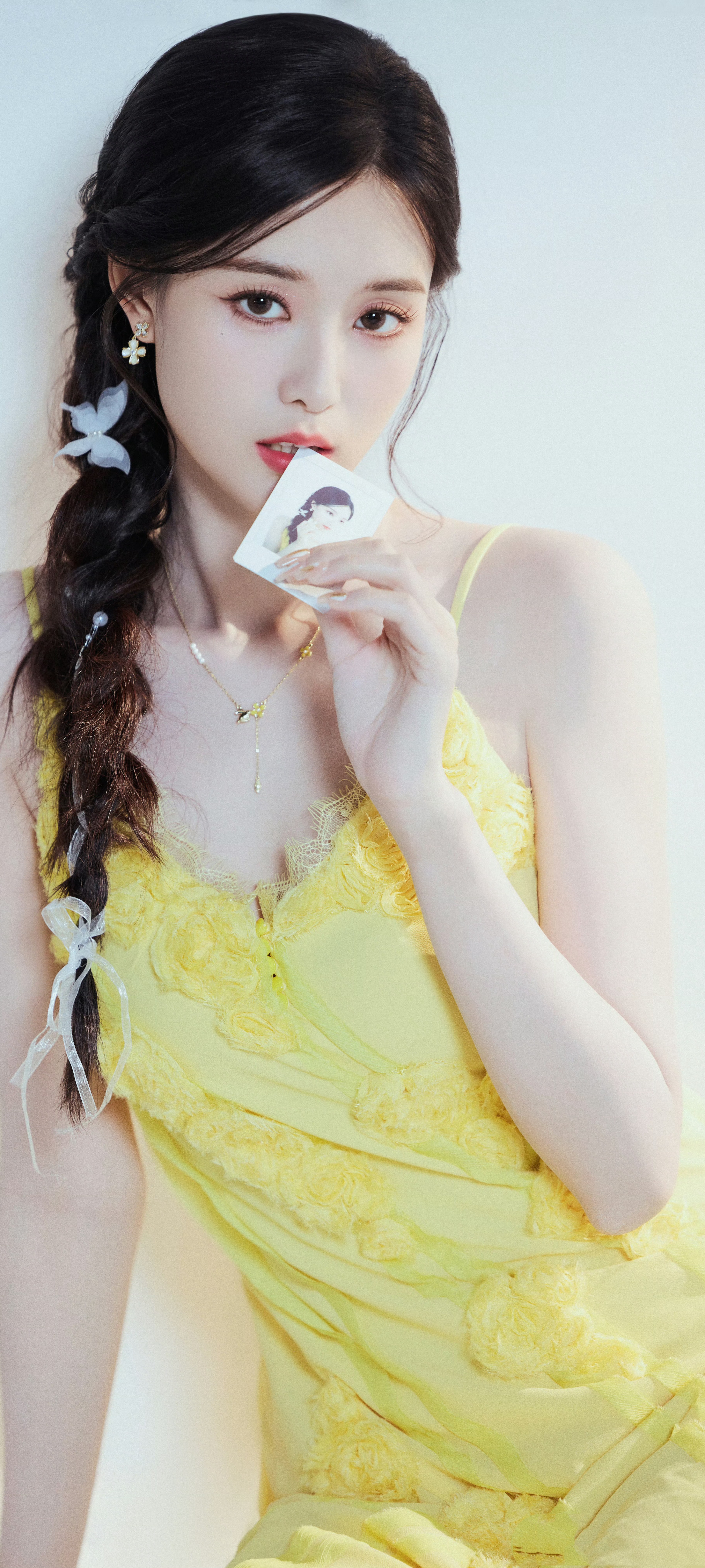 徐艺洋穿搭壁纸:穿蛋黄吊带裙的麻花辫女生甜美感满满。徐艺洋