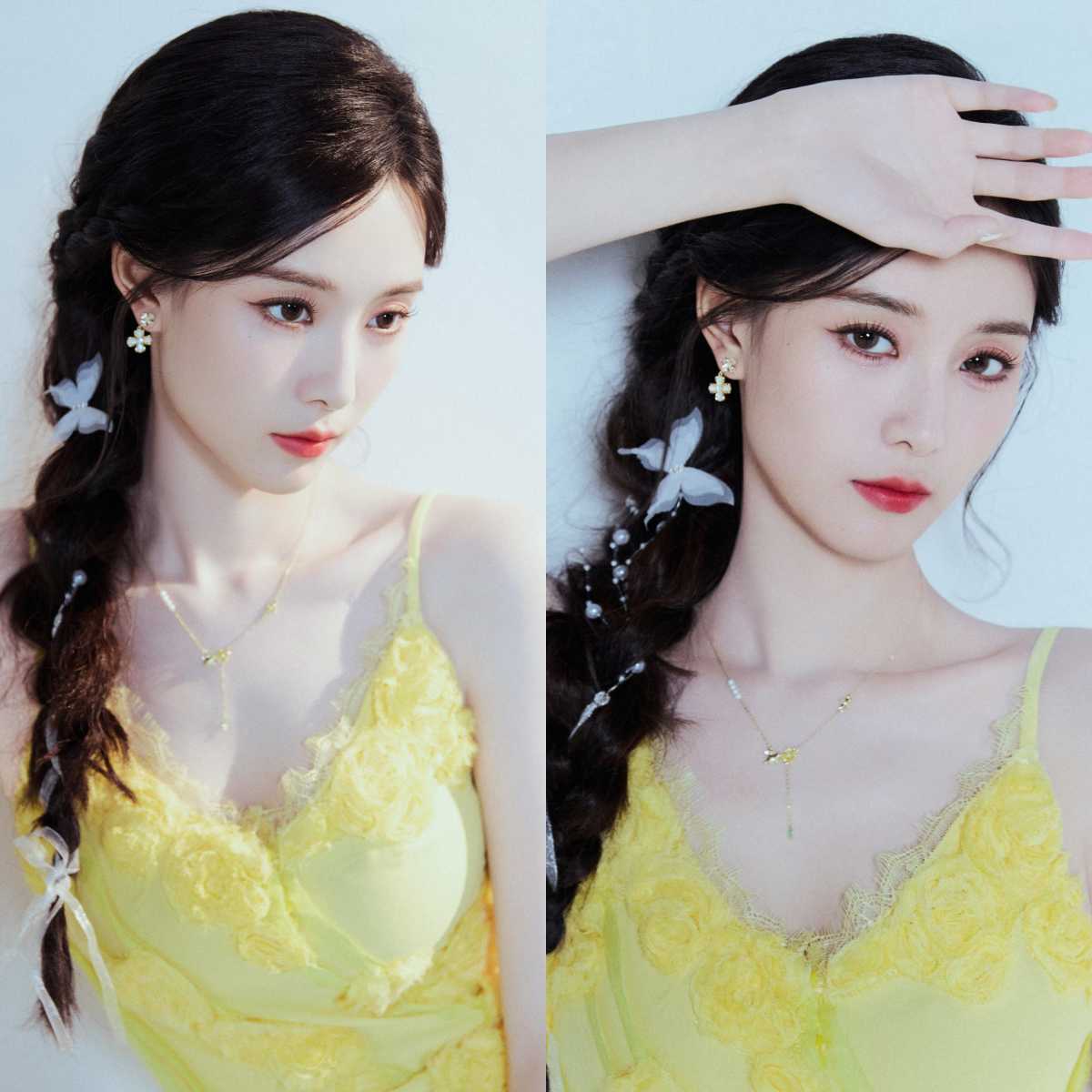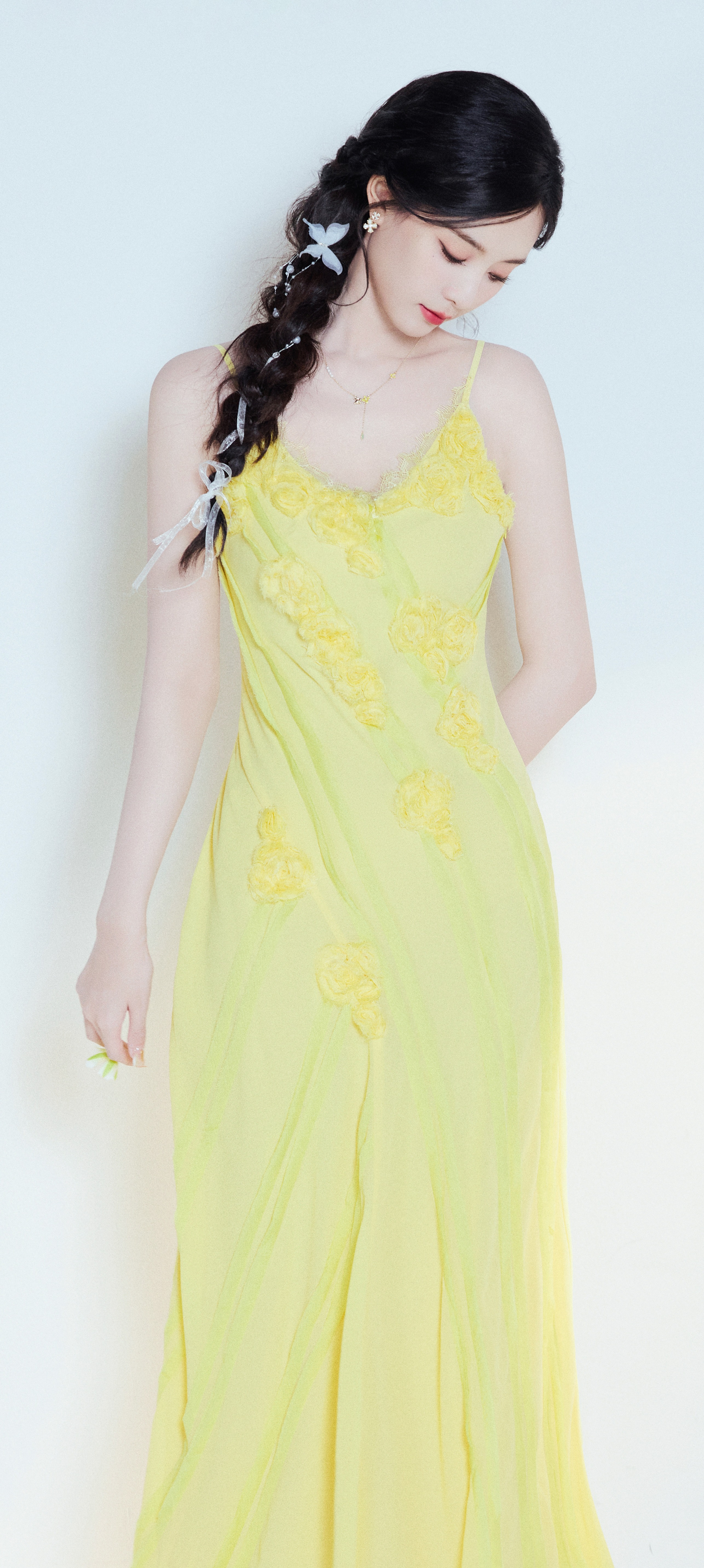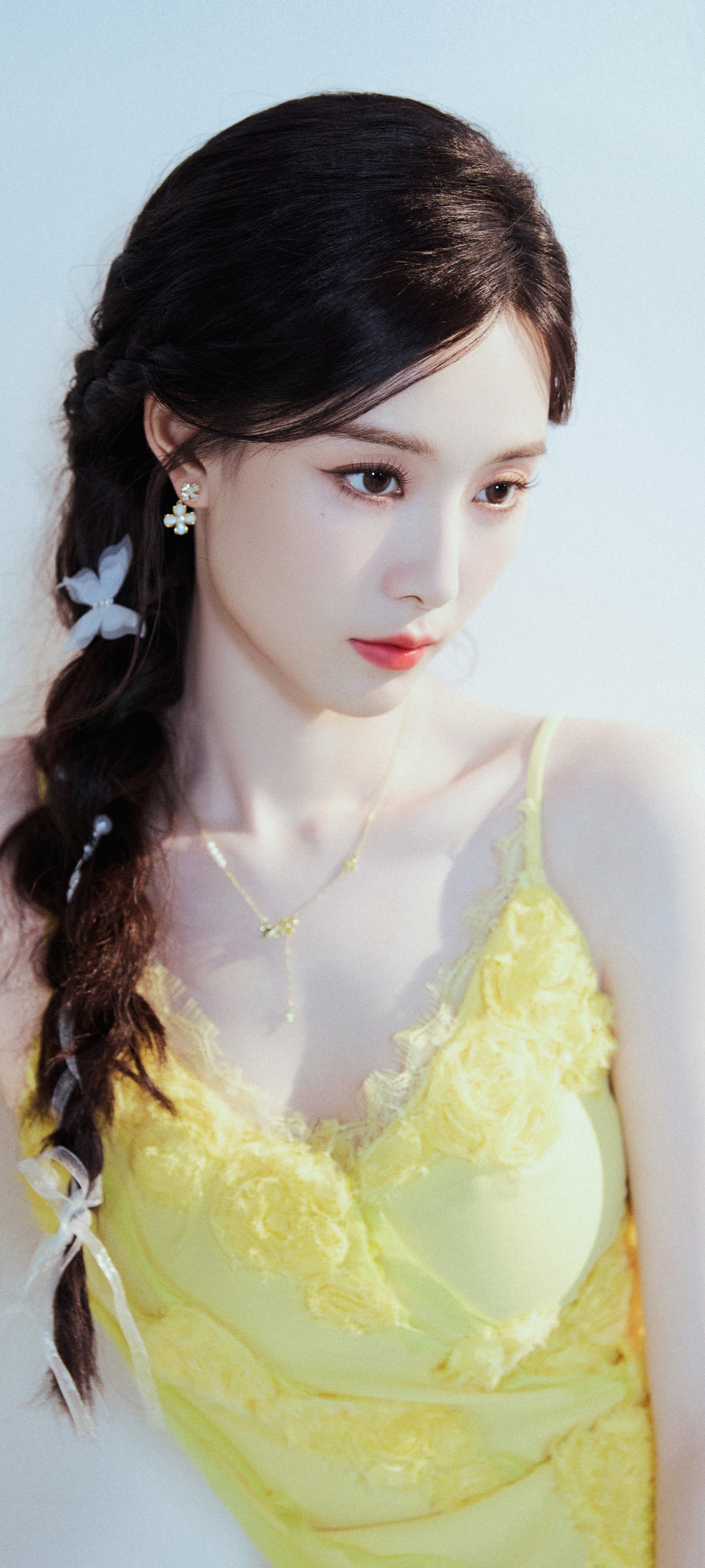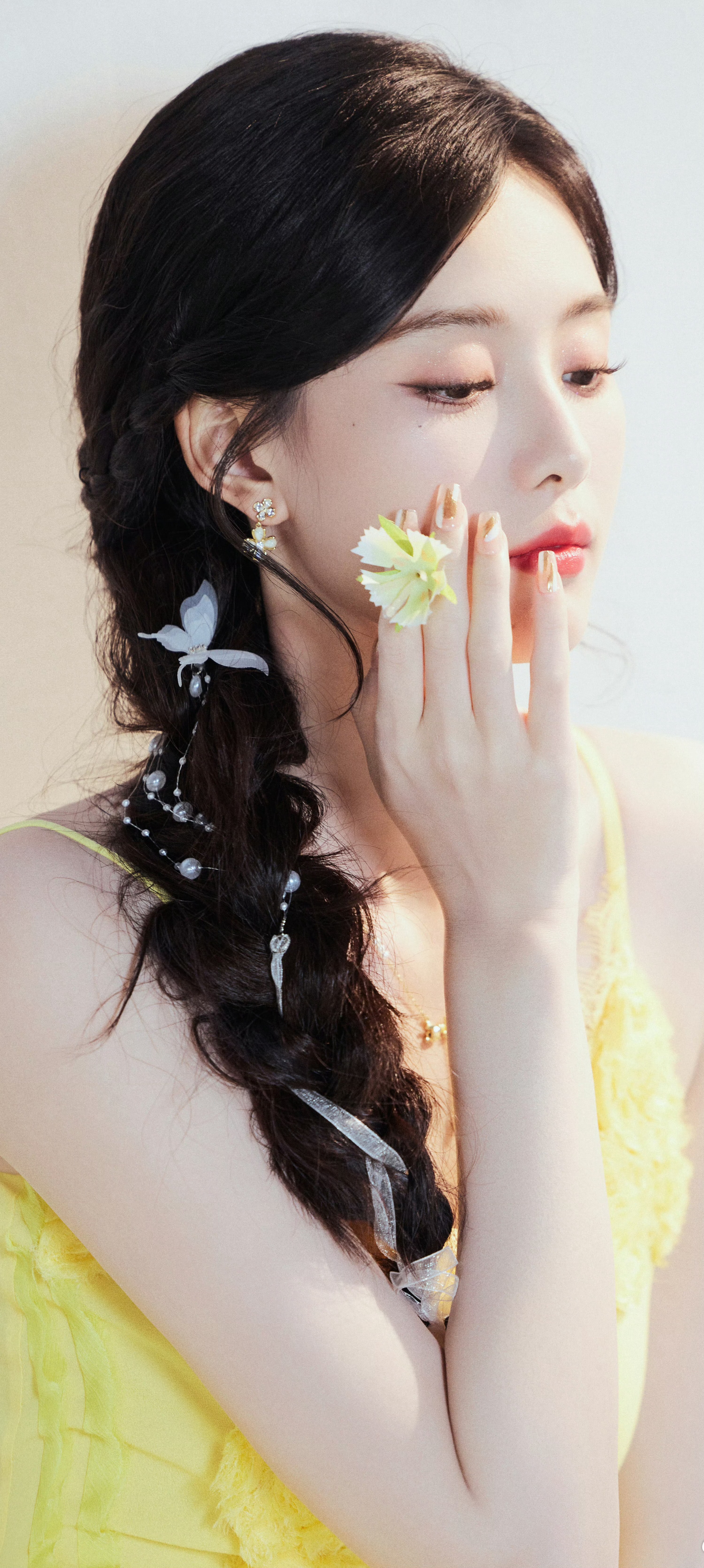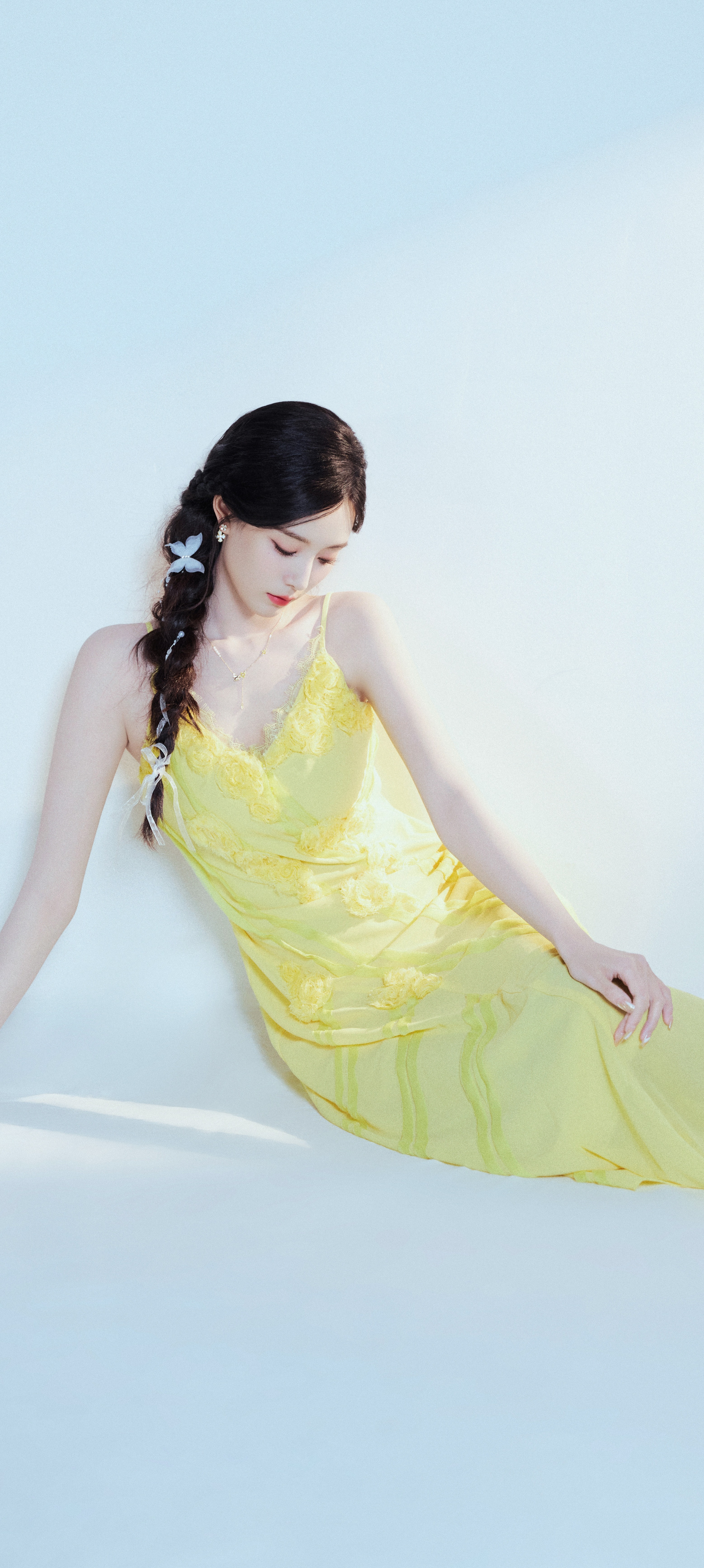 徐艺洋穿搭壁纸:穿蛋黄吊带裙的麻花辫女生甜美感满满。徐艺洋