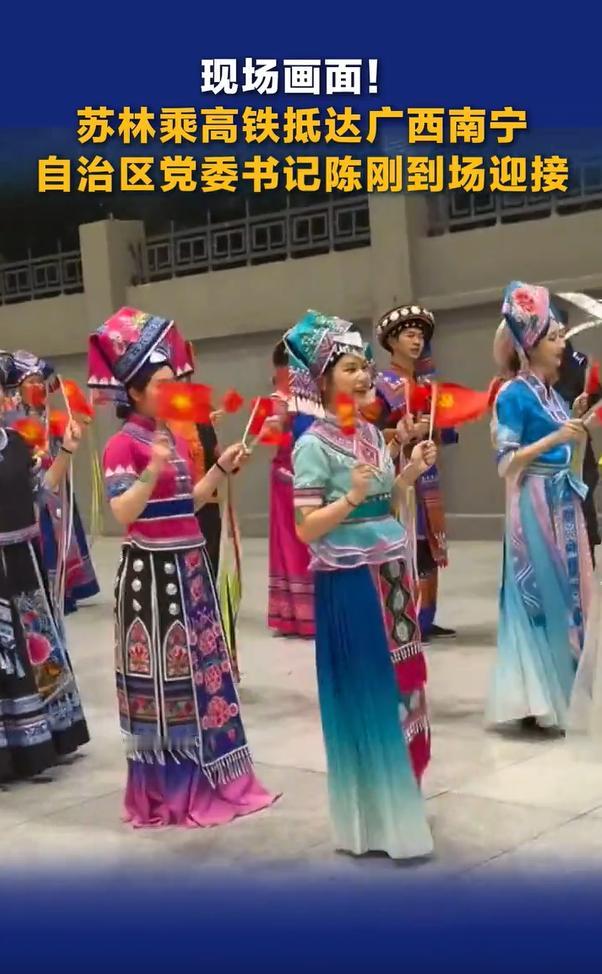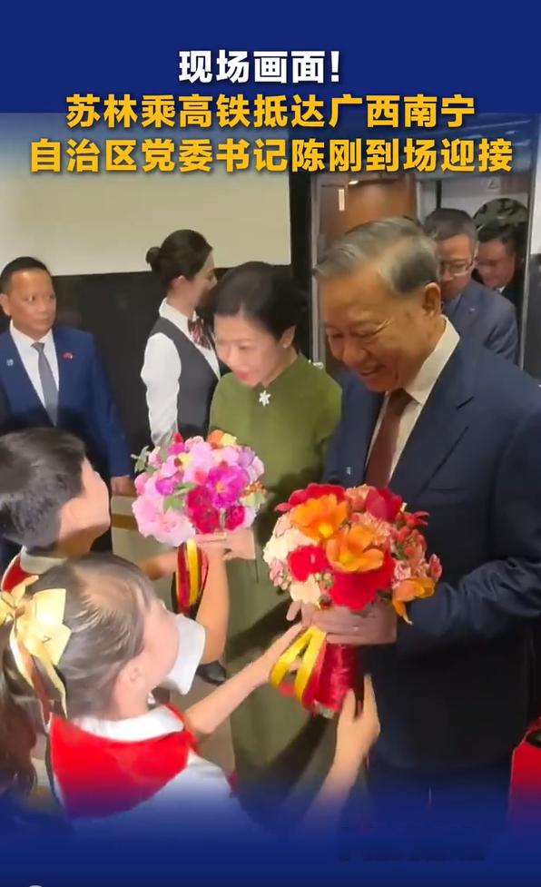 苏林抵达访华第二站广西南宁!4月16日苏林携手夫人从北京启程抵达南宁,欢迎仪式隆重,比如有小朋友上前献花,有舞蹈演员跳舞,而且载歌载舞的演员还都穿着传统服饰迎接到访贵宾。