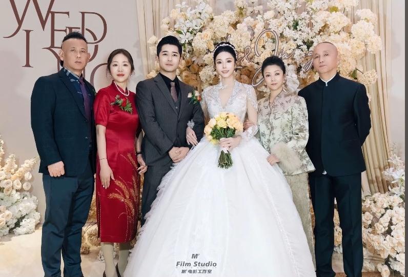 推哥的儿子今天穿着笔挺的西装,长得一表人才,和新娘站在一起简直郎才女貌;推哥的老婆也是气质出众,一身红装站在那儿飒爽又亮眼,这一家子颜值是真在线。拍全家福的时候,一家人笑得合不拢嘴,隔着屏幕都能感受到那份喜气。