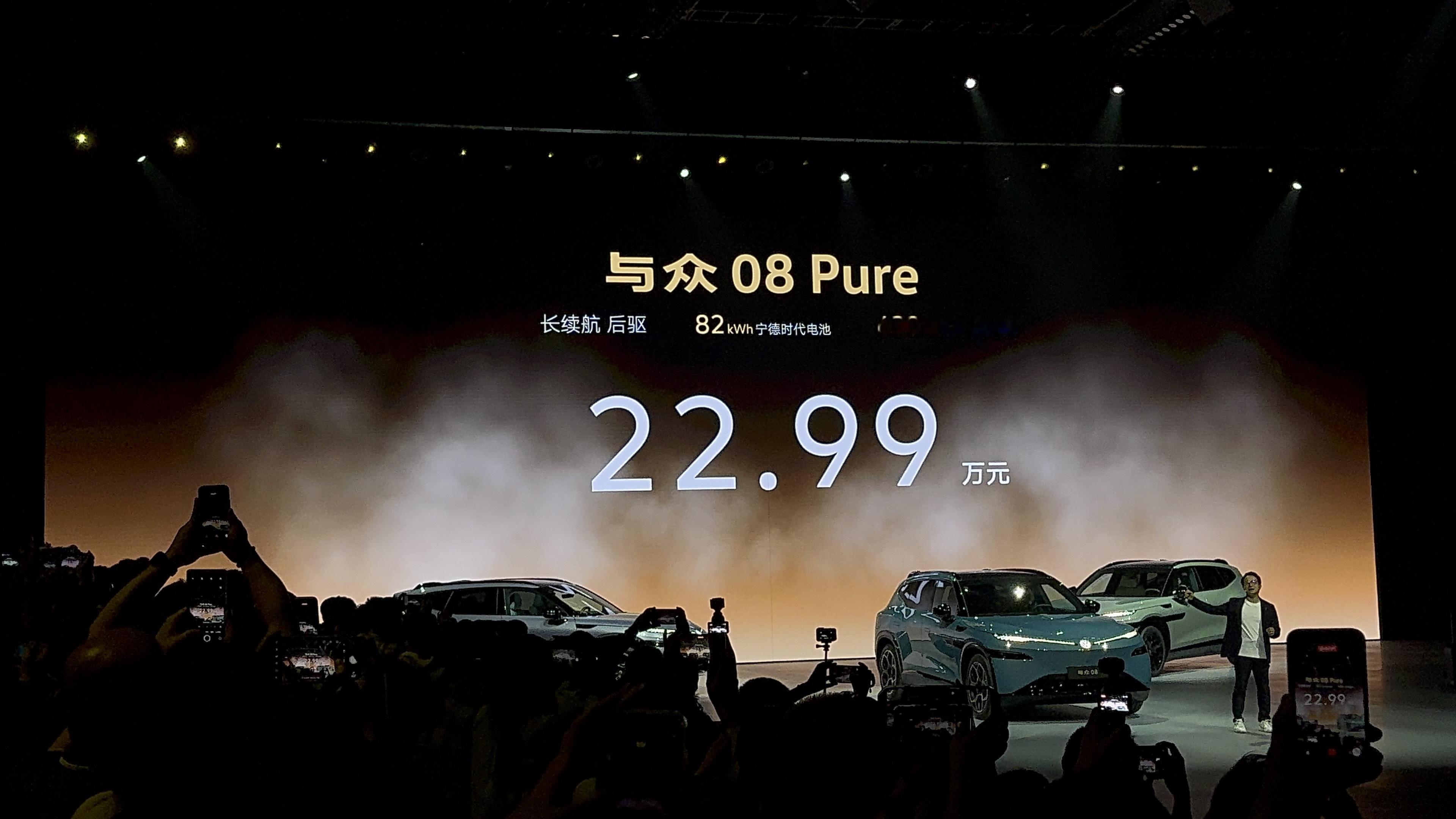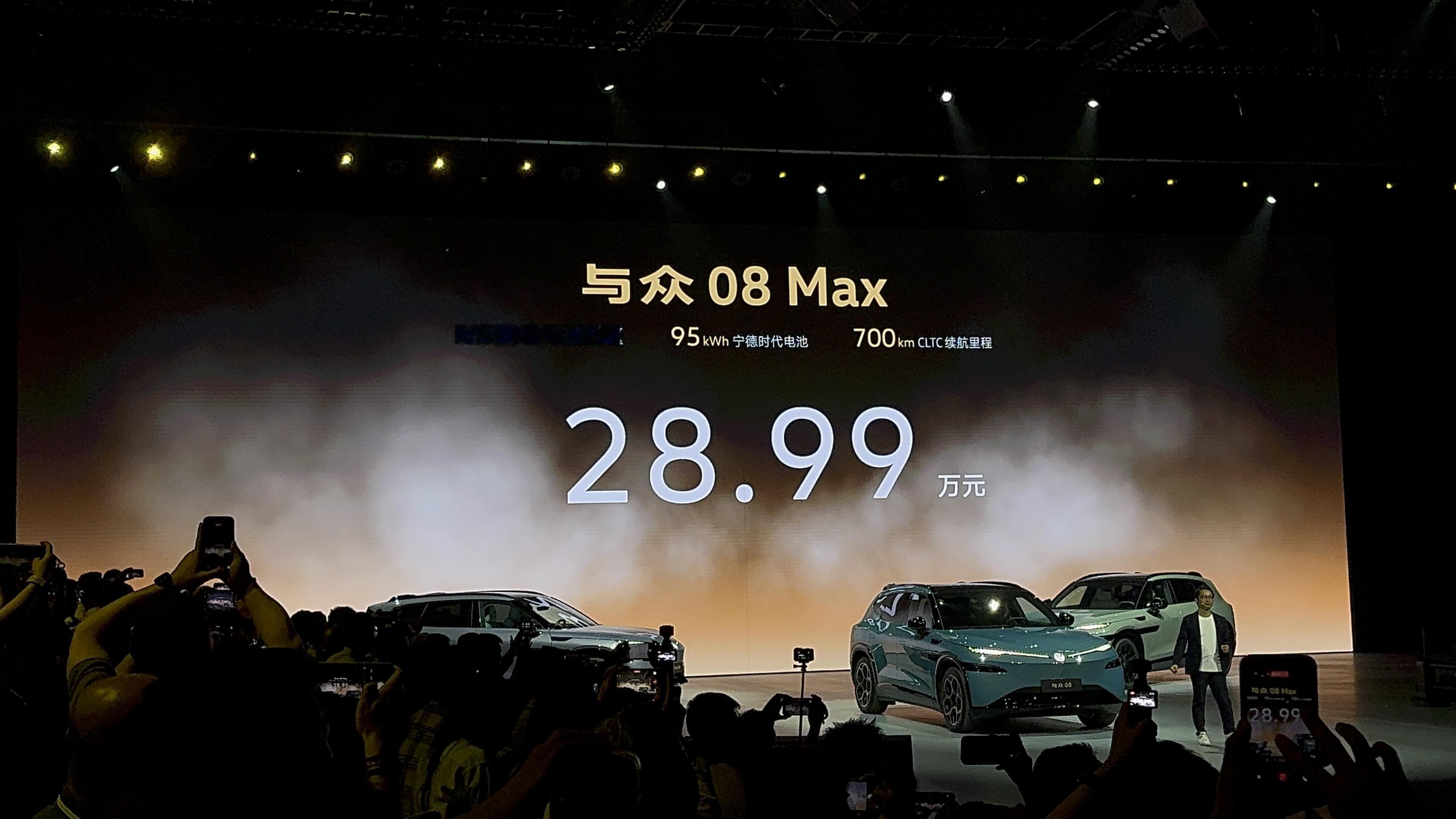 各位,金标大众与众08今晚正式发布,这车可是大有来头,这是由大众安徽与小鹏汽车联手打造的金标旗舰纯电SUV!直接把德系扎实的造车功底,和咱们国内顶尖的智能科技完美结合。官方预售价:Pure版22.99万元;Ultra版24.99万元;Max版28.99万元。与众08