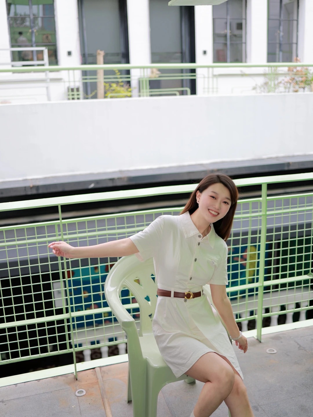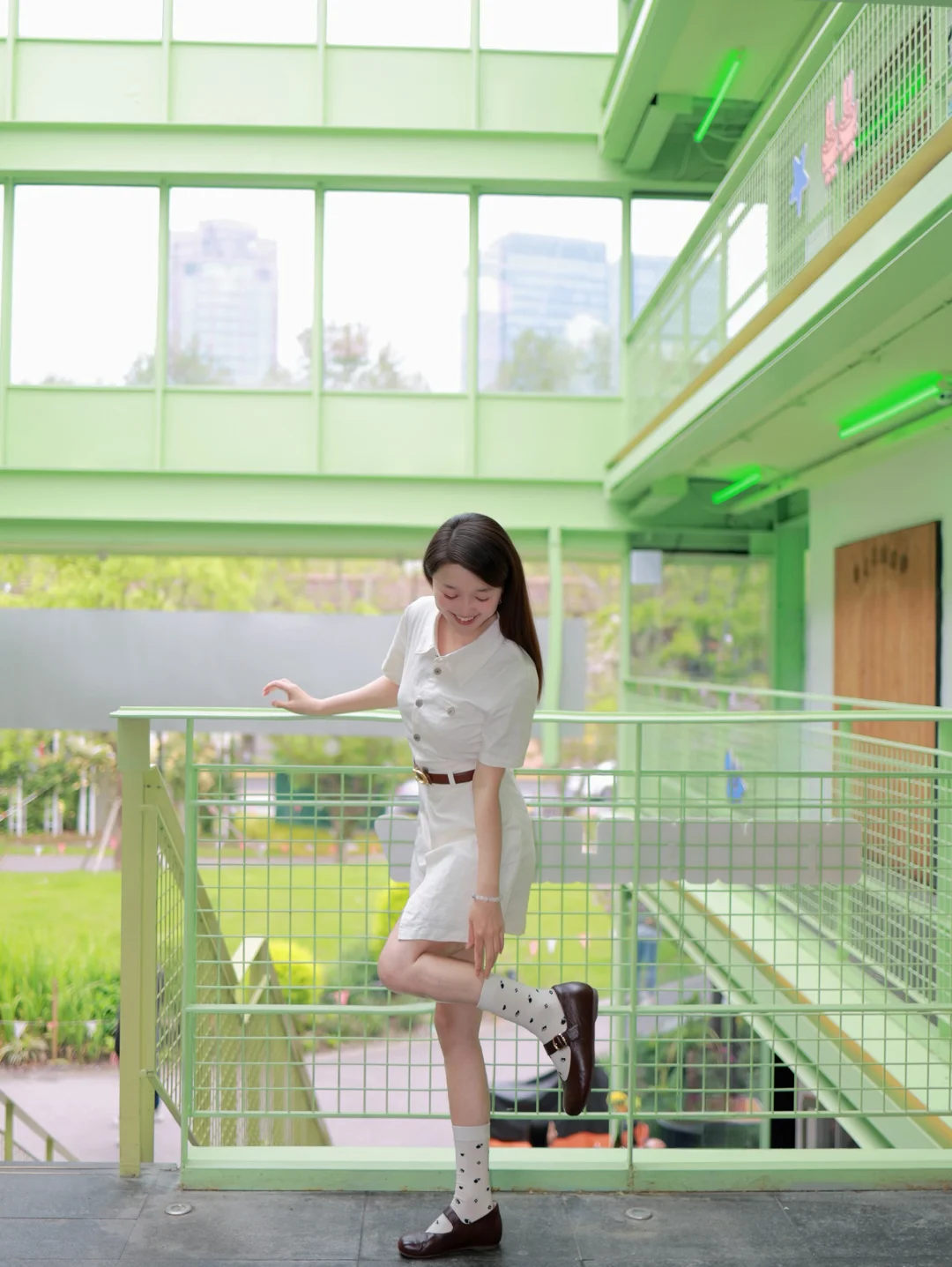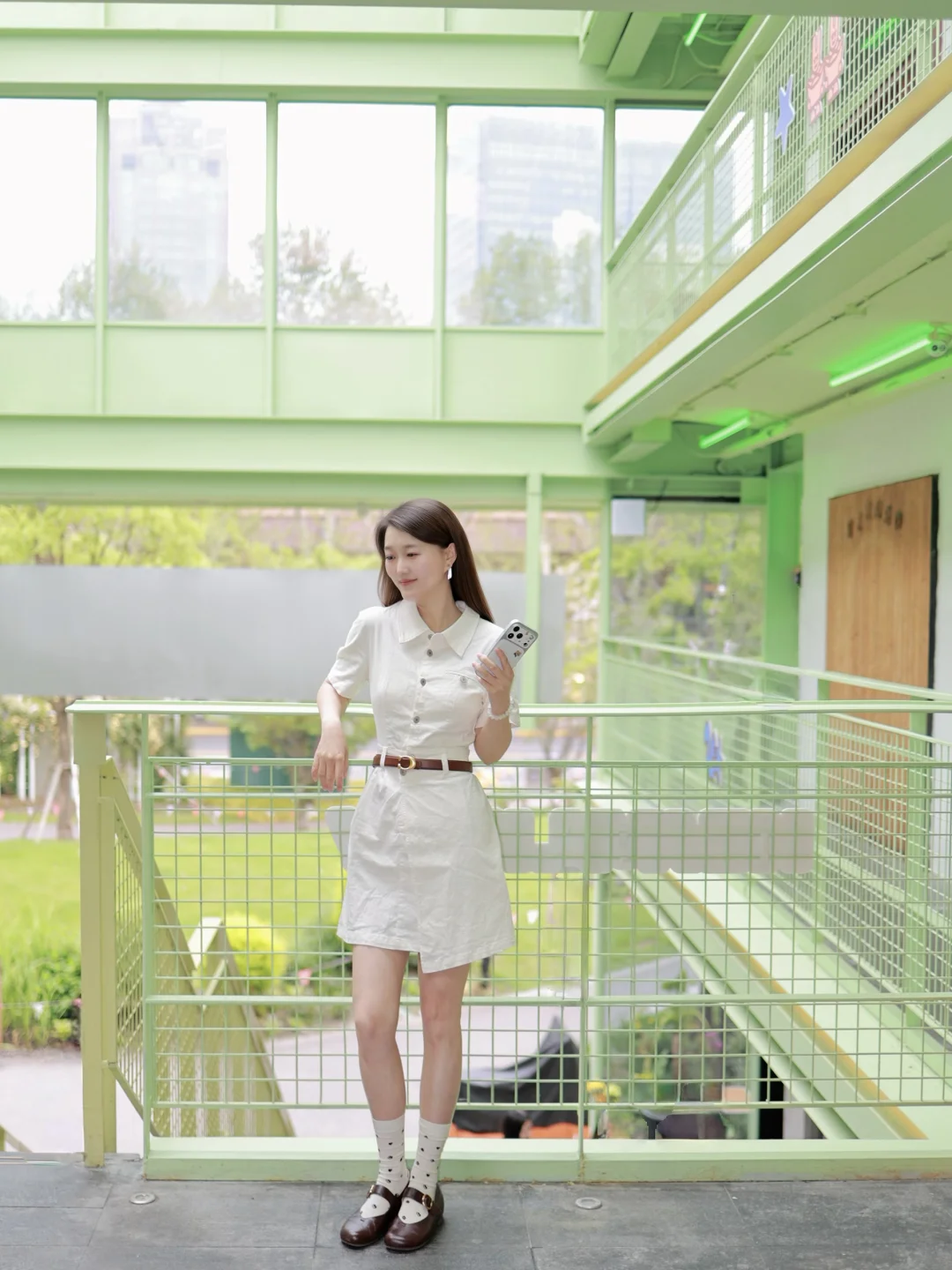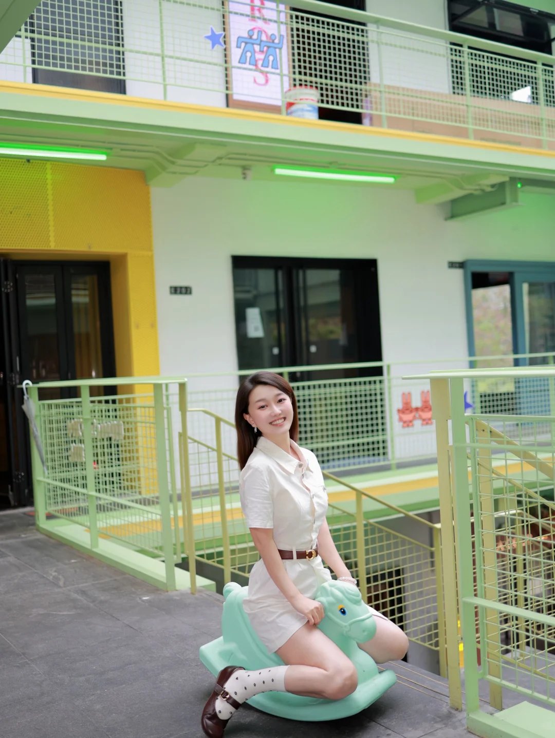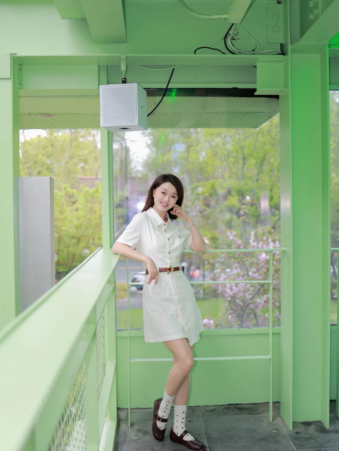 在绿意盎然的公园里,甜美少女轻轻托腮,宛如童话中的公主。🌿💕
