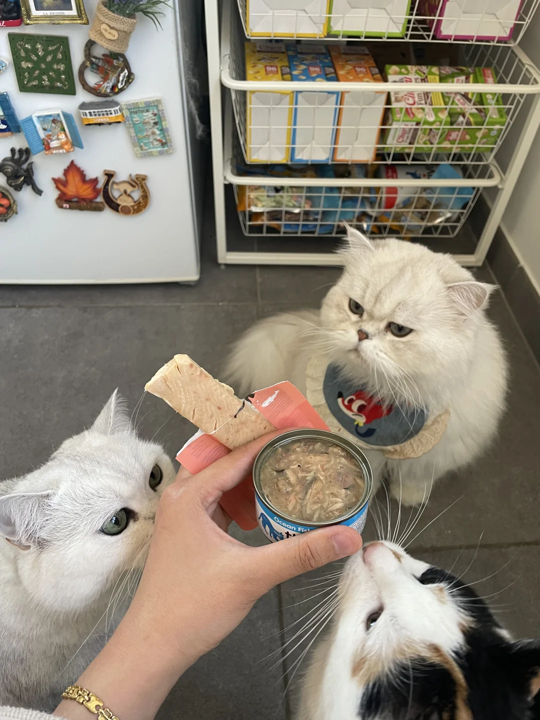 👀 三花猫宝:先盯罐头,再锁定鱼柳条