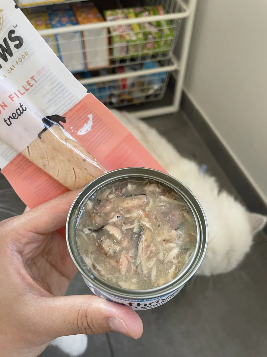 一打开罐头就是那种很真实的鱼肉丝质感,不是泥状,是可以看到一丝一丝的鱼肉,带一点点汤汁,看起来就很“人类食物感”
