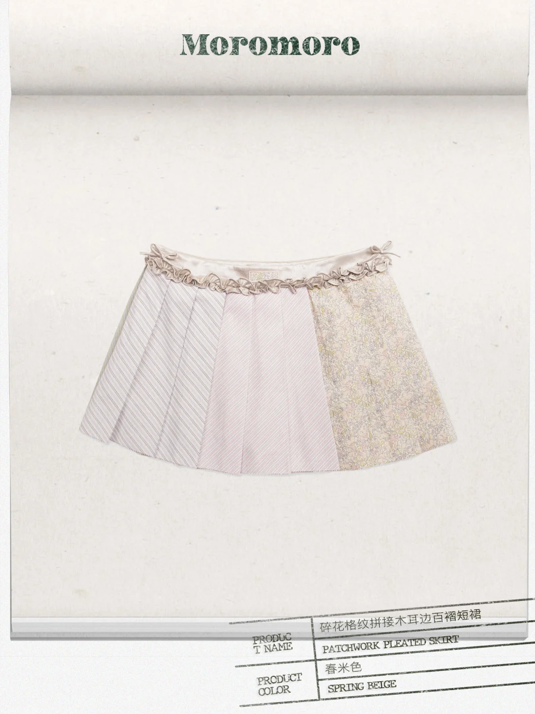 感谢juun 金主恩 上身 *碎花格纹拼接百褶短裙