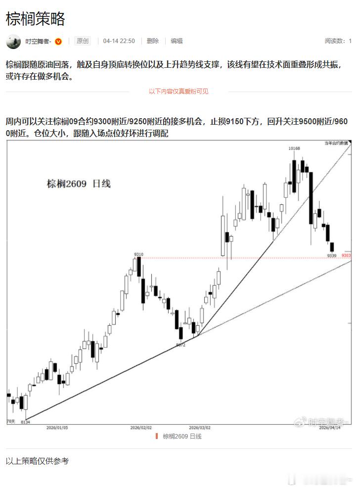 棕榈基本到位,后续要关注日线级别 9500 附近得失,能站稳该线,或许还有回升延
