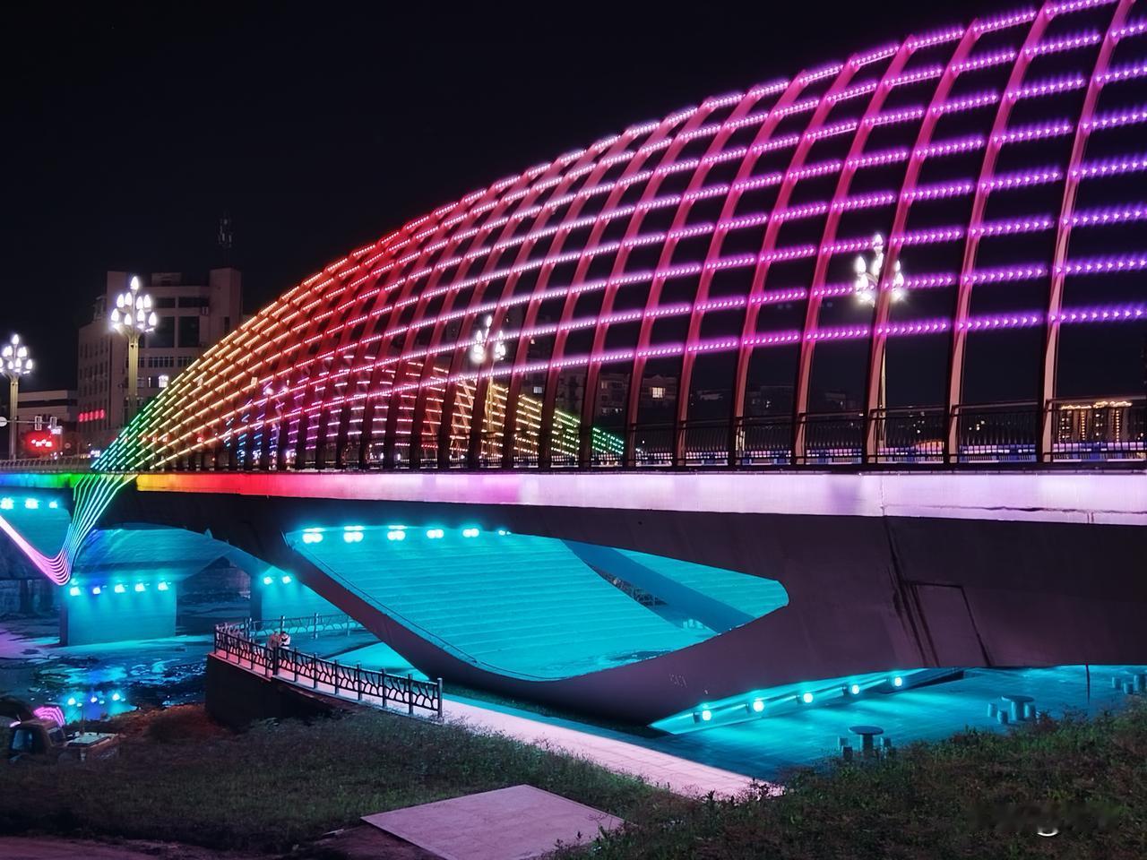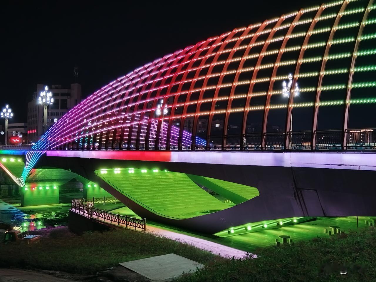 广安有个地方叫城南 城南有座桥叫莲花大桥 莲花桥边无莲花 却有美丽的灯光秀 广安