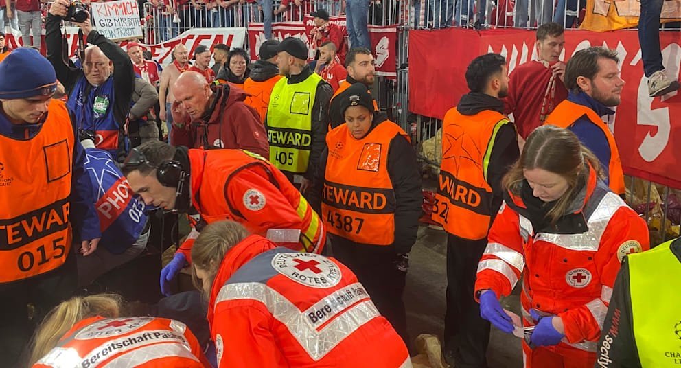 拜仁打入制胜球后,多名拜仁死忠球迷从南看台跳下,涌入看台与球场之间的隔离区域,与球员一同庆祝。两名摄影师不幸被卷入混乱之中,其中一人甚至一度失去意识。他赛后接受《图片报》采访时表示:“第四个进球之后,现场彻底失控了。我当时失去了意识,之后发生的一切都不知道。等我醒过来时,事情已经结束,球场也空了。我身上有瘀伤,很疼。目前还没来得及检查摄影器材是否受损。非常感谢急救人员的专业救治,庆幸没有发生更严重的事。这种事情本不该在比赛期间的球场内发生。”拜仁俱乐部已就此事与球迷组织进行了沟通。球迷对摄影师意外受伤一事深表遗憾,并已致歉。