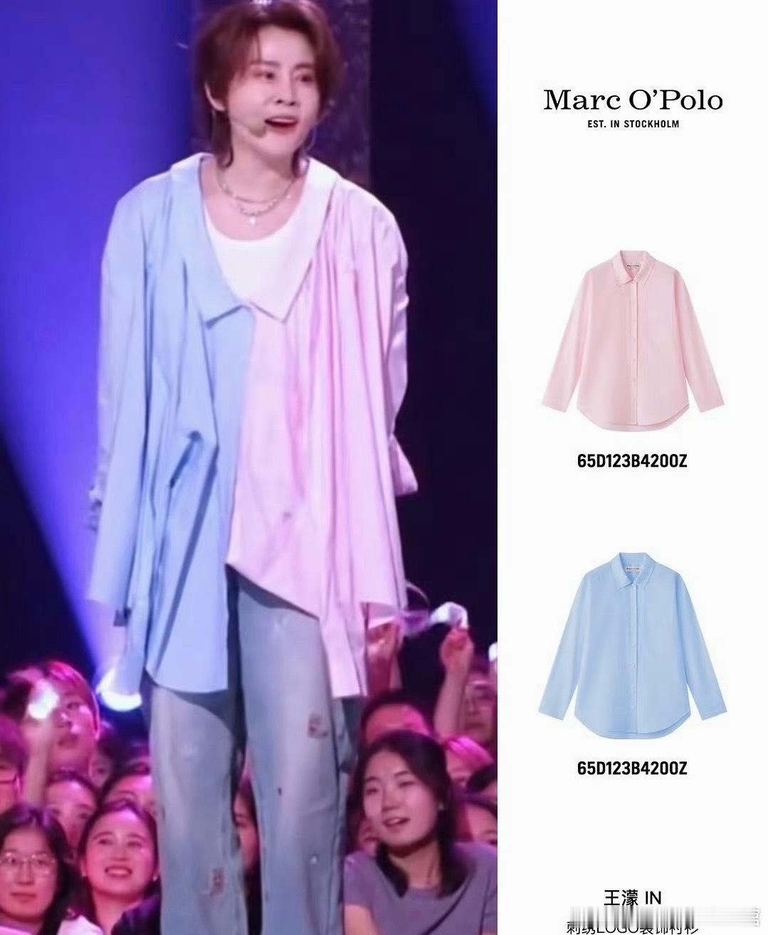 王濛的衬衫竟然不是一件拼接衬衫,而是用两件衬衫合在一起的,淡粉配淡蓝
