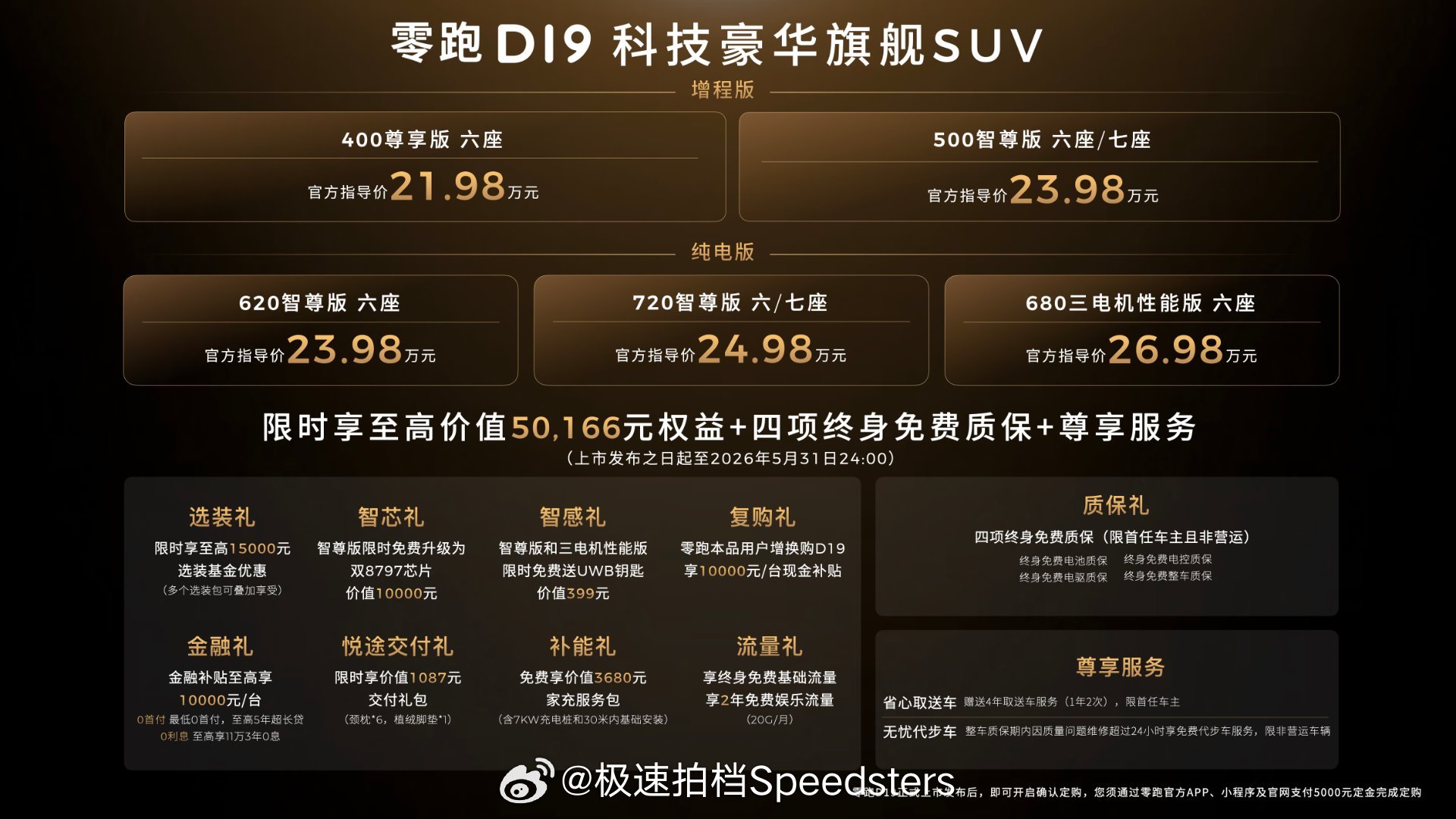 21.98-26.98 万元的零跑 D19 是零跑品牌在国内售价最高的车型,之前一直主打性价比车型的零跑,开始冲击 20w 级别价格区间市场,大家觉得还能延续之前零跑的火爆销量么?零跑d19满配豪华上市21.98万起