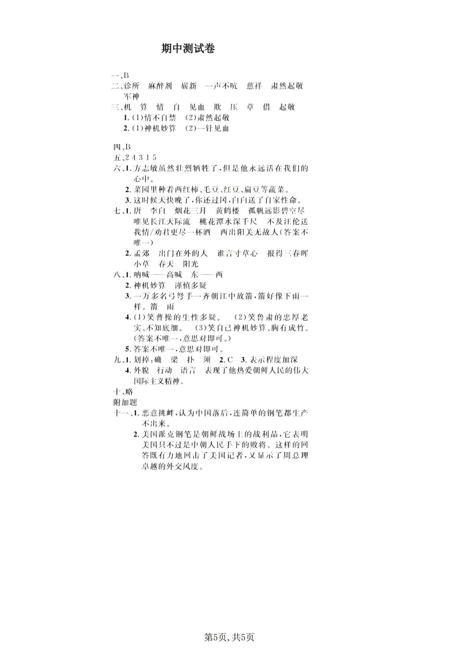 五年级下册语文期中真题卷|质量检测+答案。五年级家长速存❗️语文期中质...