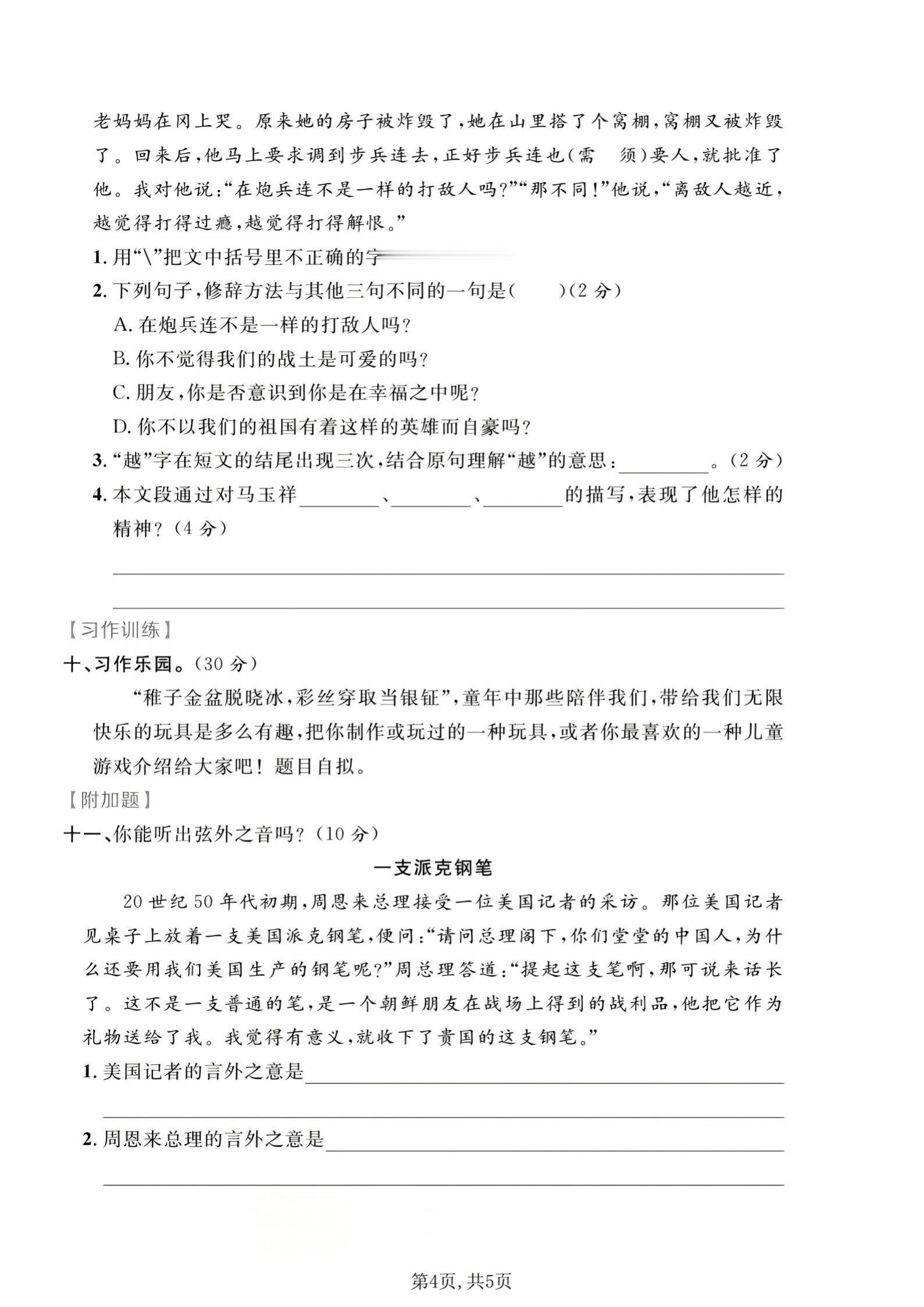 ✅课外阅读《谁是最可爱的人》/习作专项