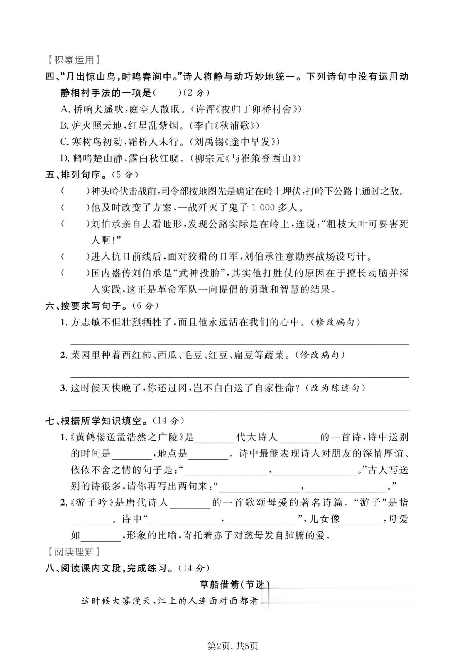 ✅字词基础/古诗积累/课内阅读《草船借箭》
