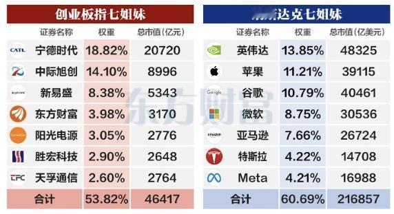 好吧,网上说的创业板七姐妹,与美股七姐妹,做个简单比较。