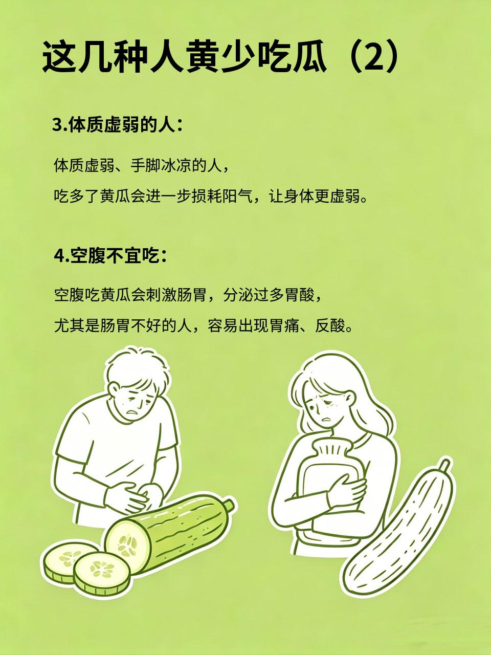 黄瓜热量低、水分足、膳食纤维丰富🥒,是很多减肥人士的首选食材,被称为“减肥神菜”。但黄瓜性凉,并不是所有人都适合多吃,这4种人吃多了,反而会伤身体。