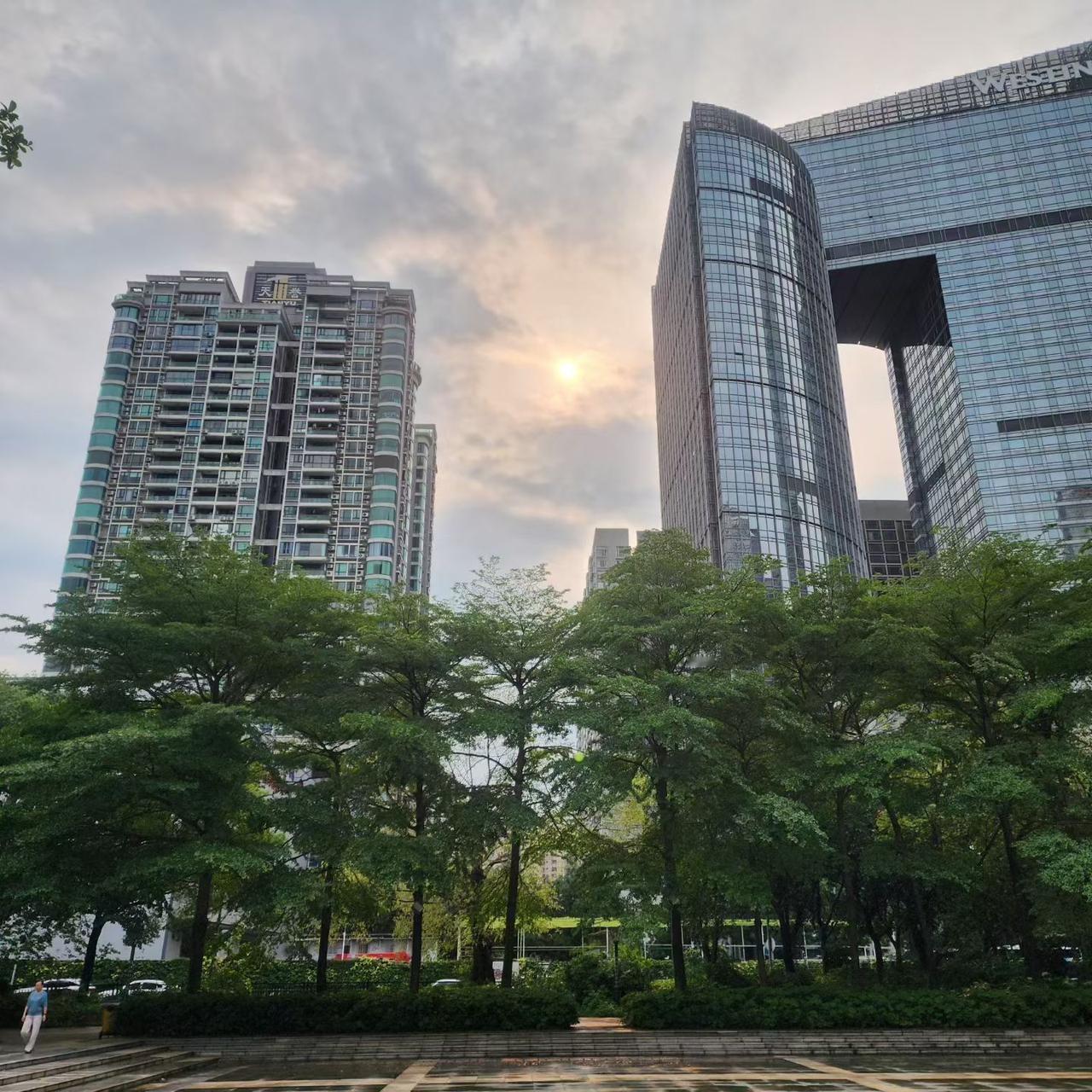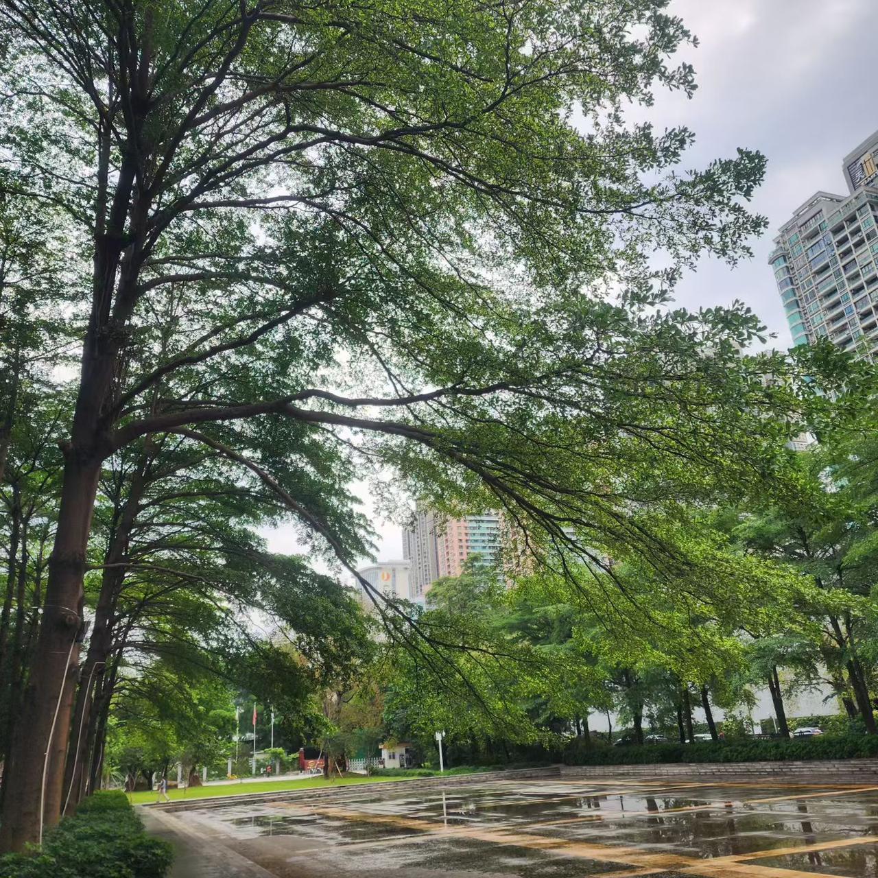 广州东站附近的榕树林是难得一见的闹市里的绿化带,榕树垂着须子,花瓣上挂着雨珠,太阳拨开云层露出真容,大橘默默地祝愿着富有朝气的城市和人们大吉大利。