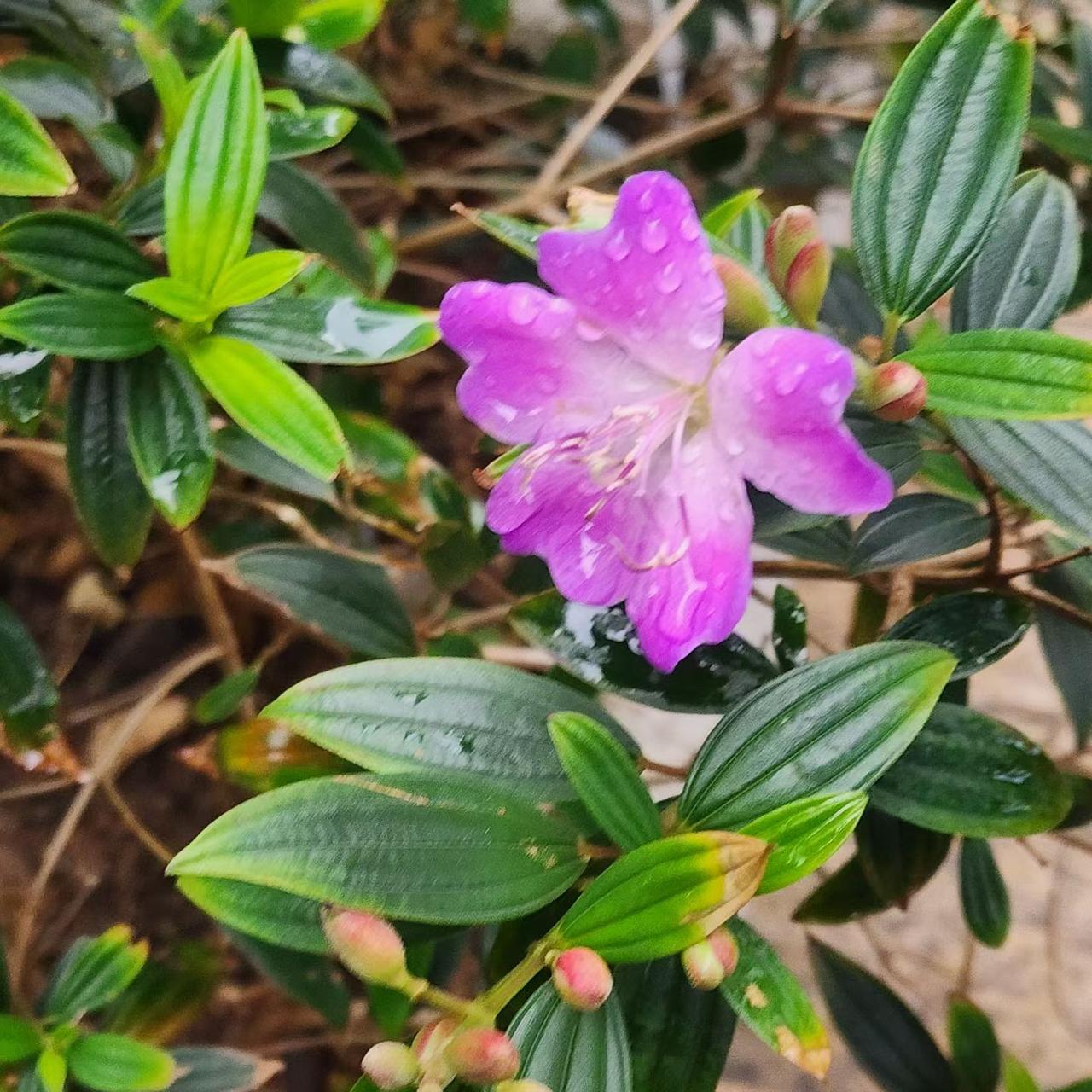 广州东站附近的榕树林是难得一见的闹市里的绿化带,榕树垂着须子,花瓣上挂着雨珠,太