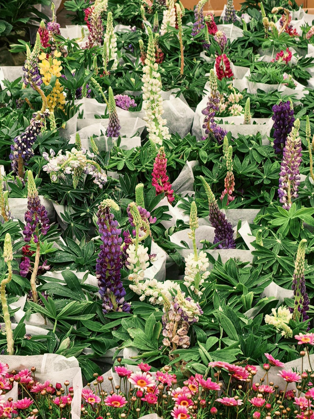色彩艳丽的小丽花,娇俏可人的玛格丽特,还有鲁冰花。