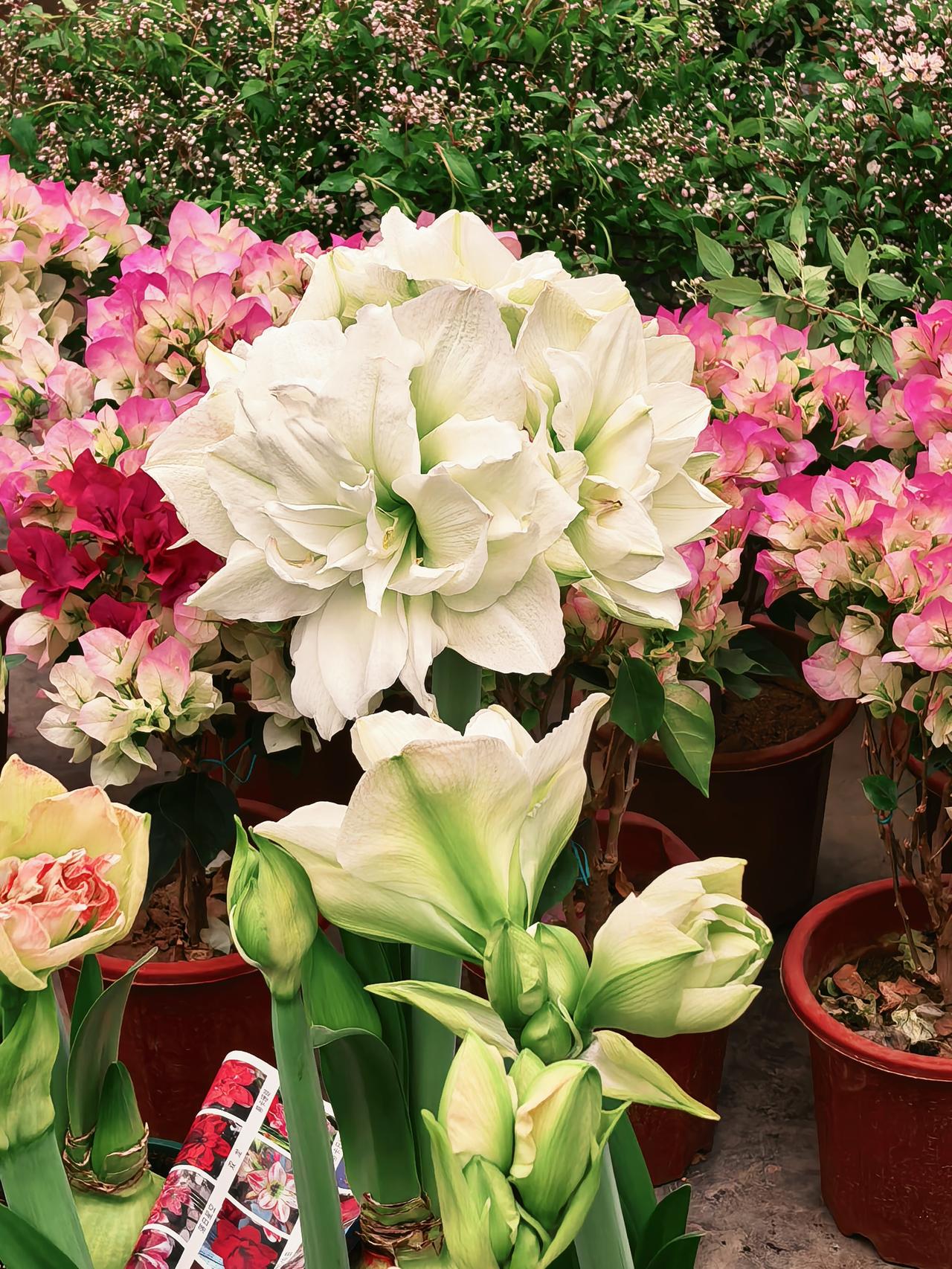 鲜花绽放的时节,花市里愈发五彩纷呈。大朵大朵的绣球花,蓝、紫、红、绿,各种颜色应有尽有;花朵硕大的重瓣朱顶红,开得那叫一个美。一朵朵金黄的小向日葵🌻在阳光下格外惹眼。