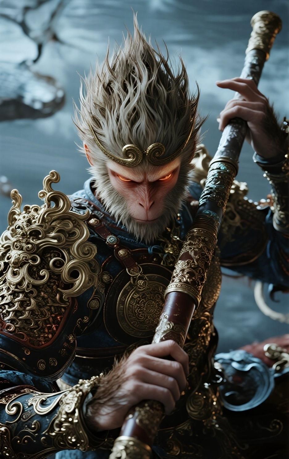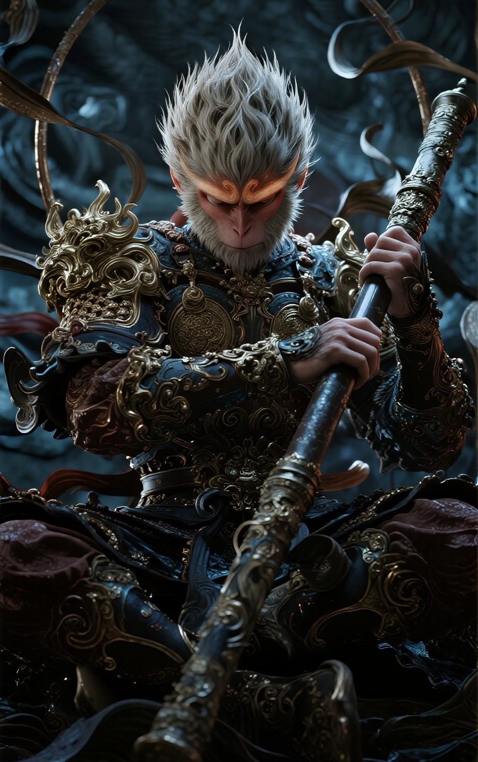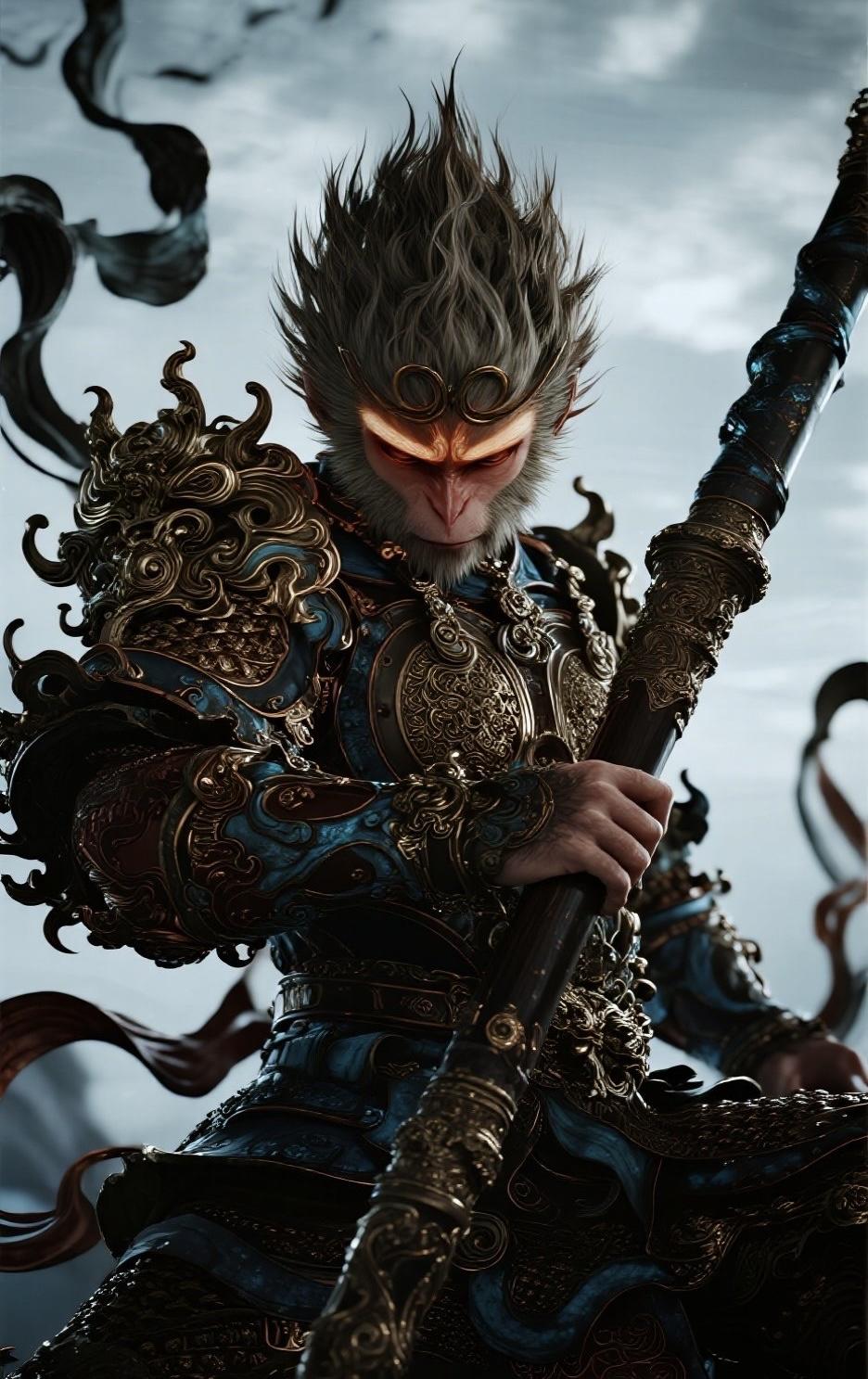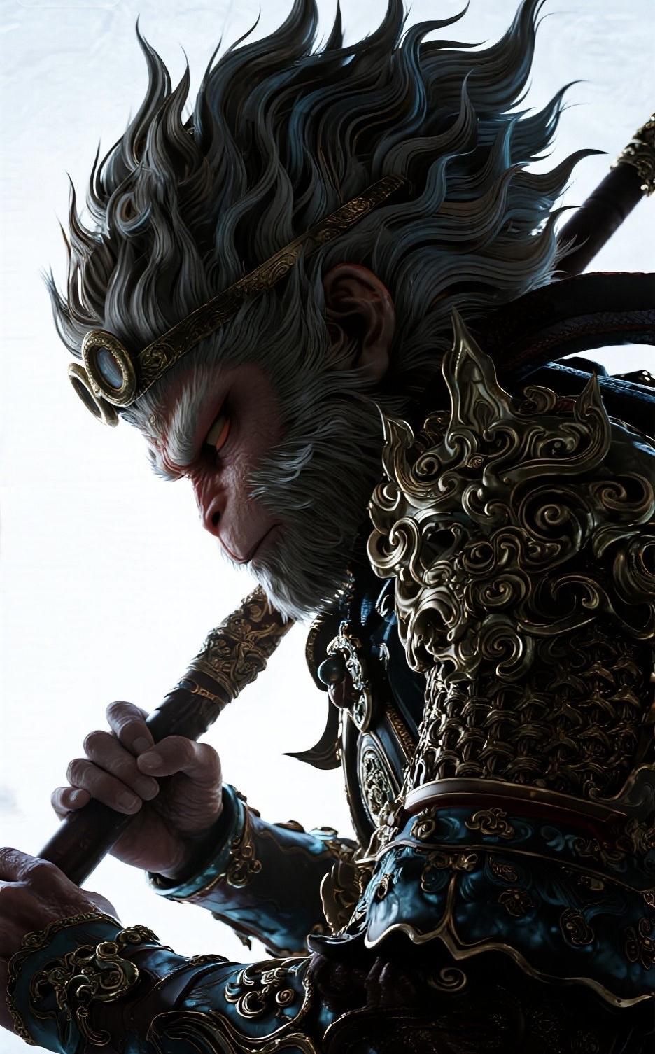 精美壁纸(703)🌈 📝全景仰视视角下,悟空仅露头部与手部,立体精致,轮廓分