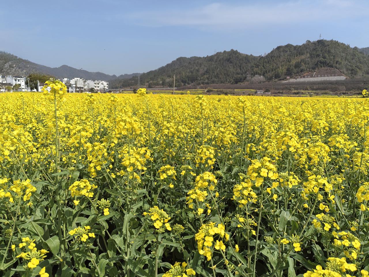 分享油菜花照片周末团骑,打卡婺源县赋春镇。金灿灿的油菜花盛开。
