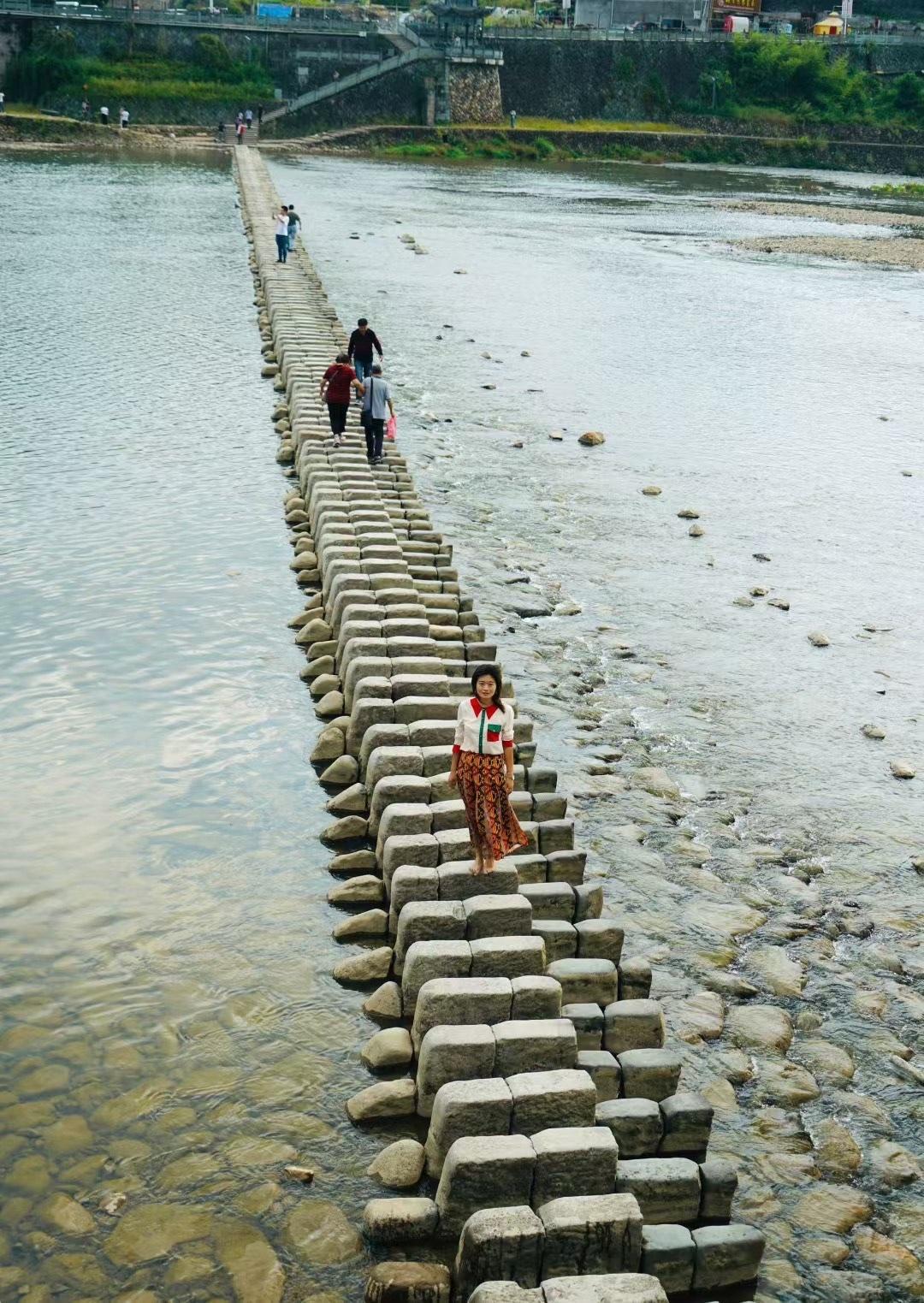 再走仕水碇步,溪水依旧,青石如故。儿时父亲牵我过桥,他曾高大如山,如今并肩而立,