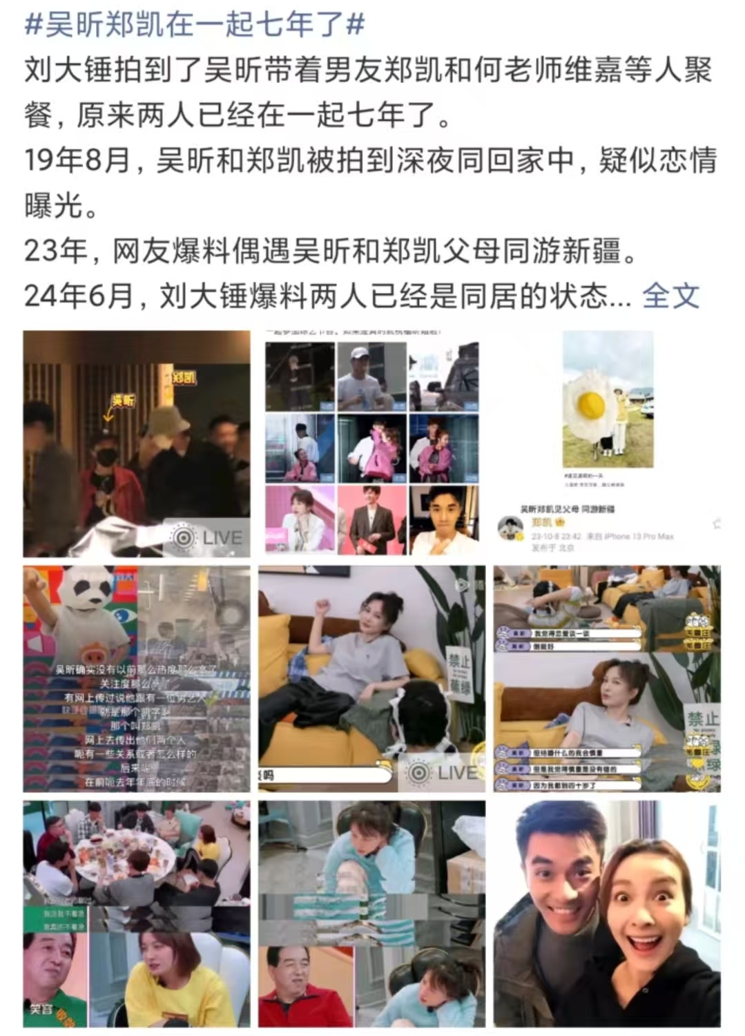 当年那个躲在角落的女孩,终于活成了自己的光说起吴昕以前的样子,很多人的印象还停留在《快乐大本营》最边上的位置。那会儿她每期说不上几句话,被剪掉的镜头永远是最多的,被嘲“花瓶”“腿粗”“没存在感”。下了台就拉着杜海涛一起哭,数自己说了几句话。后来台里给她立人设,让她学林志玲发嗲,一个东北姑娘每天对着镜子练装可爱,结果观众不买账,她自己也不开心。这些年吴昕慢慢走出来了,她开了餐厅、做了投资,在《乘风破浪的姐姐》里大方展示自己,哭也不躲了,笑也不藏了。当年那个连镜头都不敢看的女孩,现在可以坦然说出“恋爱可以谈,结婚要慎重,要对自己负责”。这句话她是真的说到做到了。而郑凯就是出现在她“不着急”的那几年里的。没有轰轰烈烈的官宣,没有合体上综艺捞金,他甚至因为名字和跑男郑恺同音总被搞混,但七年如一日往返京湘两地探班,被拍到永远是默默陪在吴昕身边,2023年还被网友偶遇陪双方父母同游新疆。两个不争不抢的人,就这么安安静静地走到了第七年。这世界总有人急着赶路,也总有人愿意慢慢来。吴昕选择了后者,然后发现,慢慢来,真的比较快。