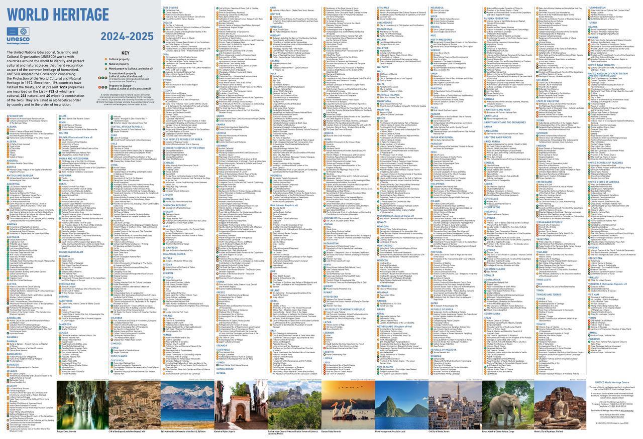 截至2026年4月,全球世界遗产共1250项左右,分布在170多个国家,分为文化遗产、自然遗产、文化与自然双重遗产三类。