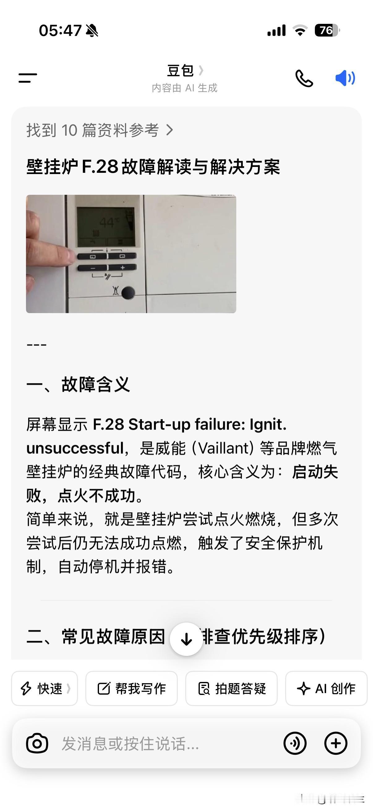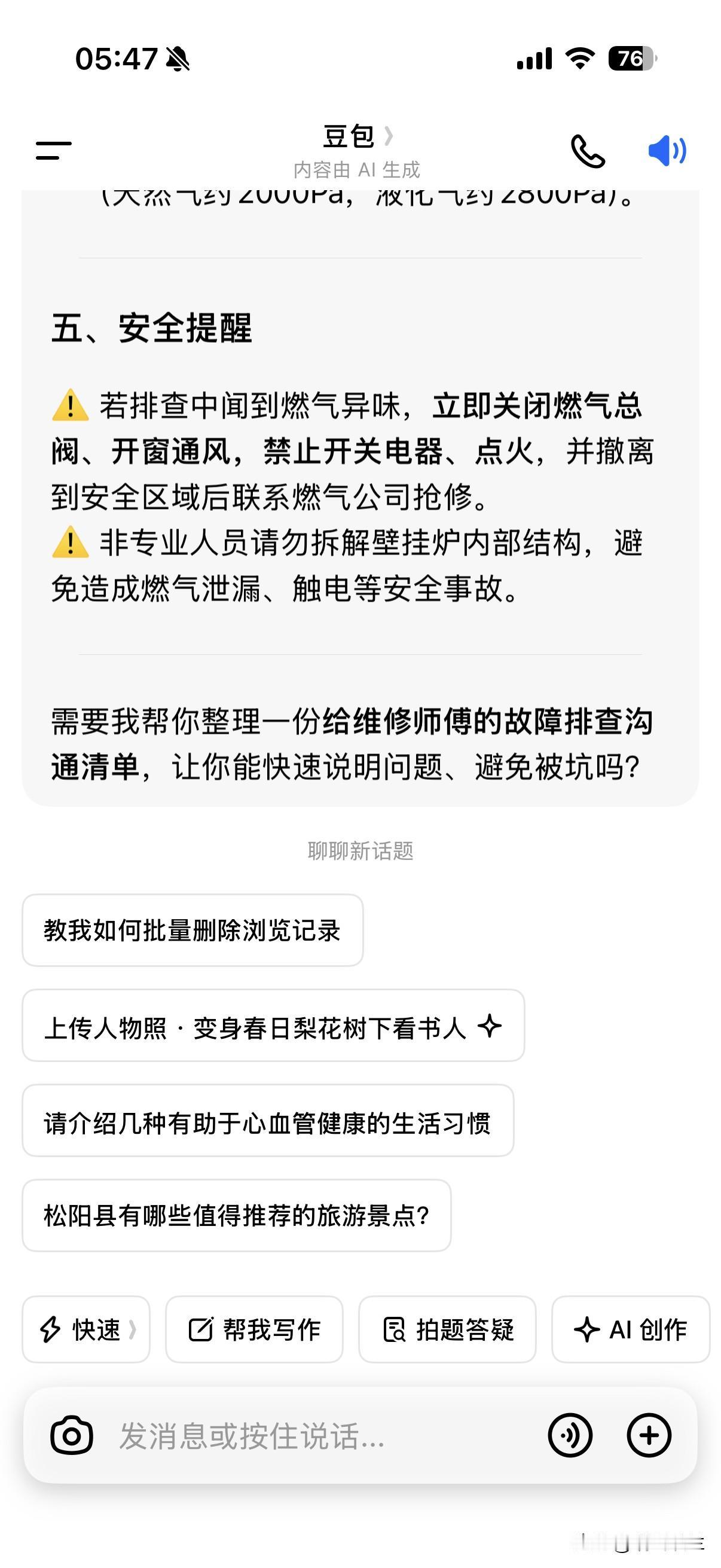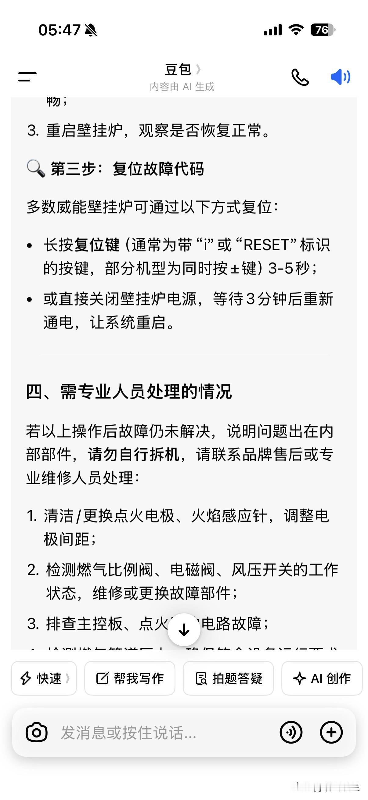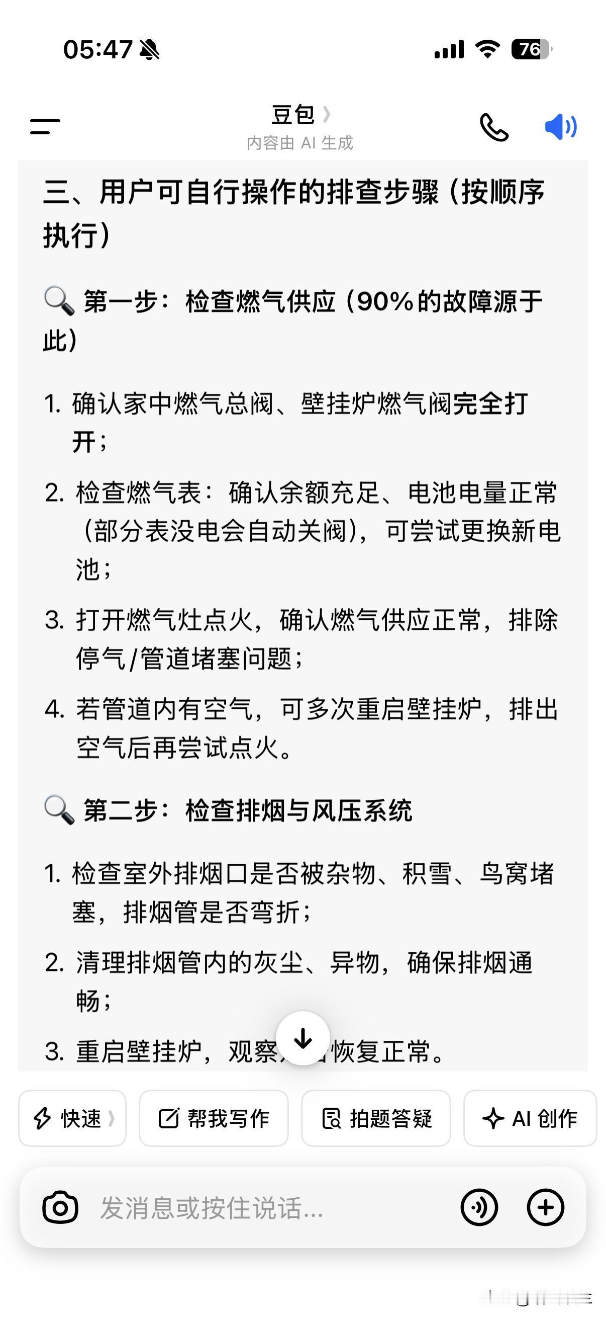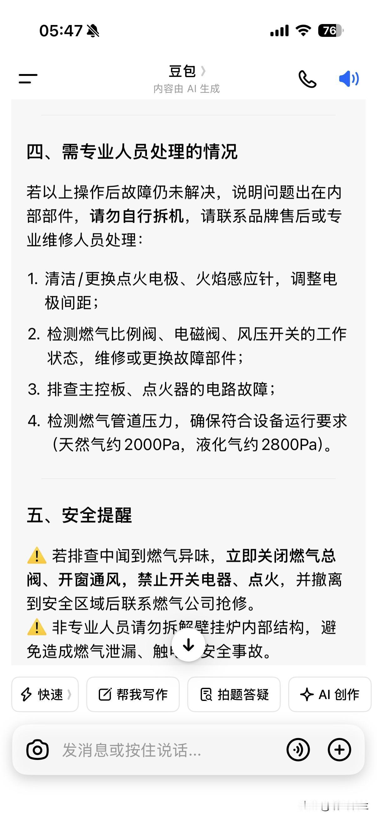晚上与我在出差外地的弟弟联系,他让我找燃气热水器的售后服务,与豆包给出的解决办法一样。