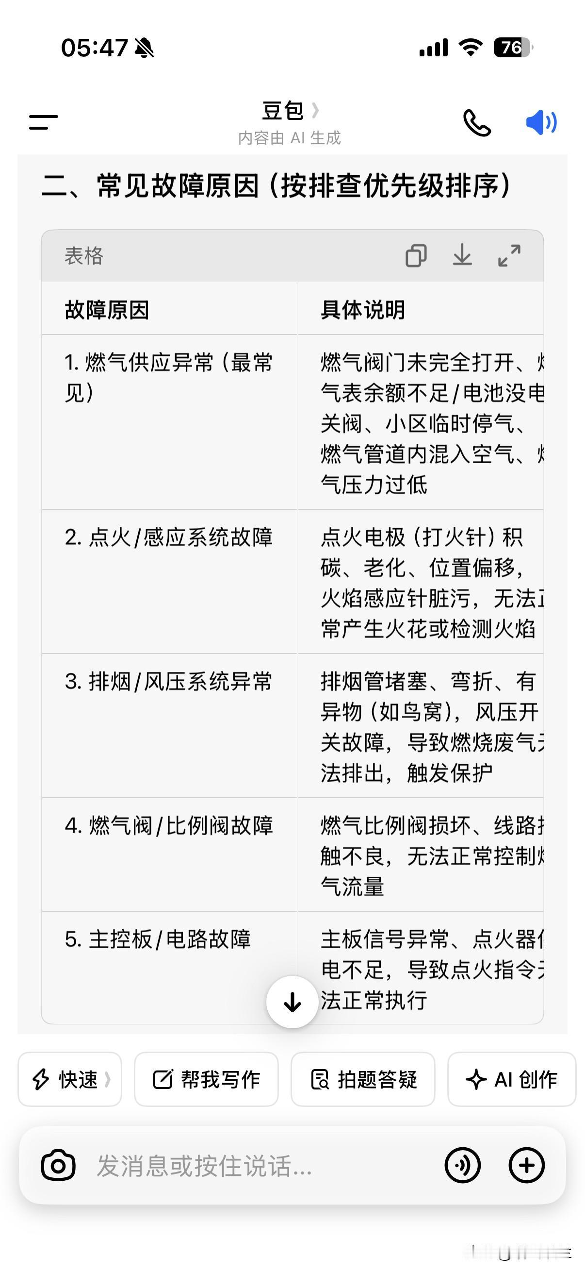 拍照发给豆包,一张清晰的故障原因和解决办法列表就出现了,照着一件件尝试排除,就知道该怎么办了。
