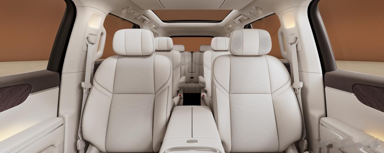 六座版留出了195mm宽的中央通道,第三排靠背支持131°无级调节,还带座椅加热。七座版的第二三排座椅放倒后,后备厢容积能扩展到2667L,从数据看确实够大。