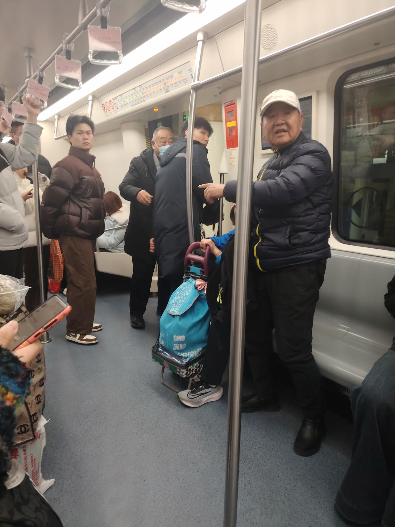 2月9日下午,乘坐郑州地铁2号线,一年轻人给上车的老人让座,老人落坐时看到座位上