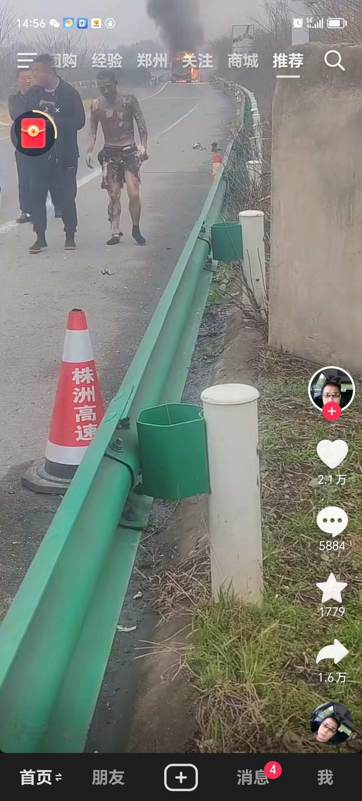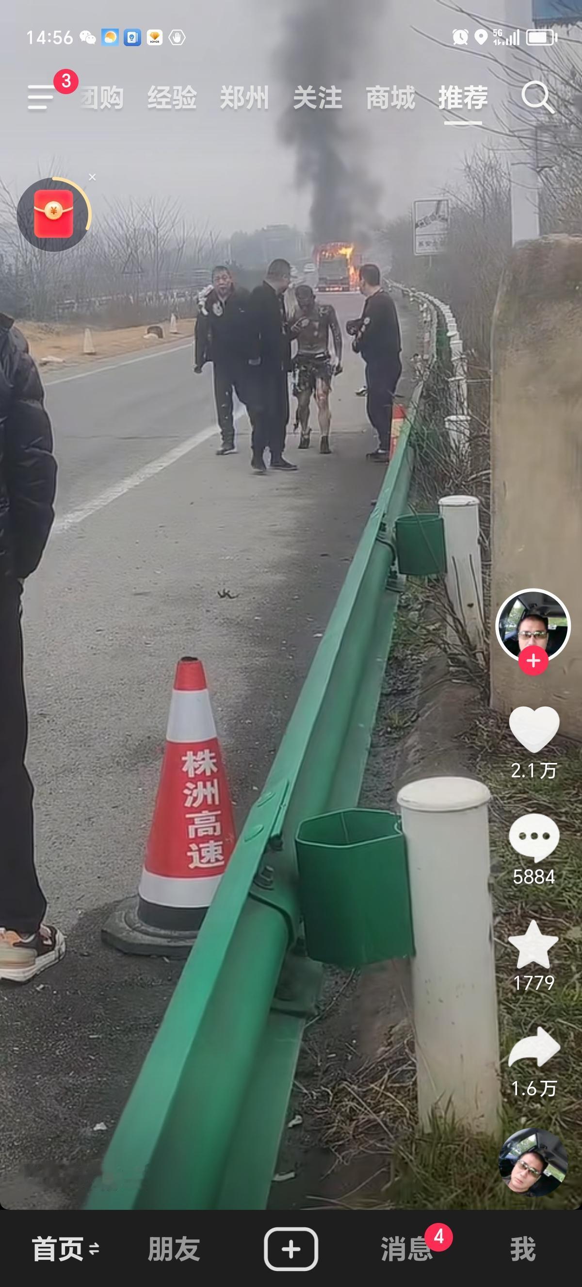 我的天,汽车途中起火,师傅烧的体无完肤还能走路,万幸捡回一条命,希望能够马上救医