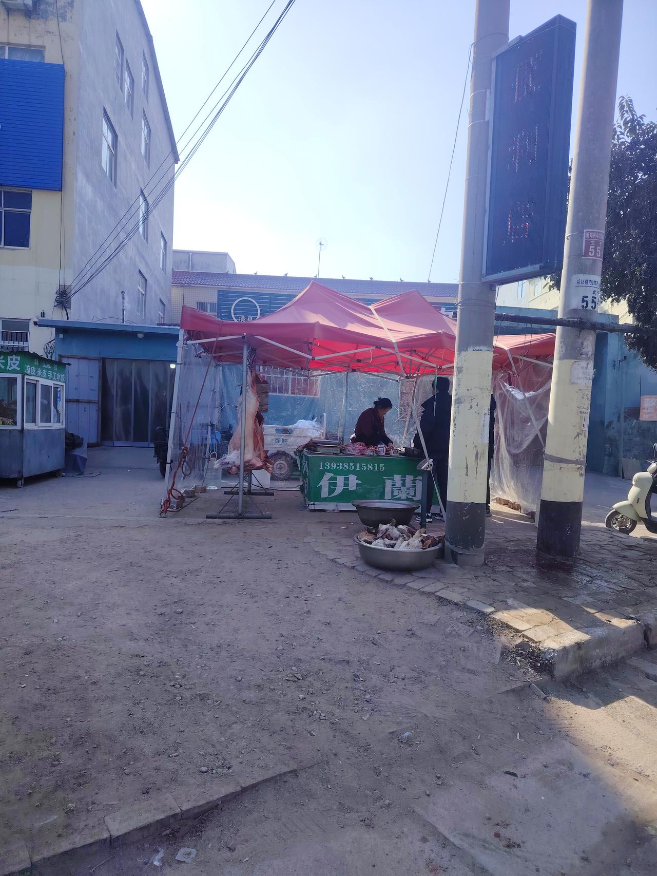 风吹过夹道欢迎的樱桃树,首先映入眼帘的是绿油油的爬地菠菜,三元钱一斤价格很低,三轮车上成捆的本地大葱才1.6一斤,2元一斤的河藕节节肥美,这可是待客的下酒好菜,路边摊上挂着宰好的山羊肉质细嫩,这正是我不畏远途来的目的,据说山羊肉比绵羊肉炖炒好吃,这里价格比市区便宜合33元一斤,买上三百多元钱够吃上一阵子了,耳边传来大白🪿鹅的欢叫声,笼子里的两只鹅不知忧愁正引颈高歌,12元一斤着实便宜,铁锅炖大鹅是固始名菜,可惜我们怕做不好只好放弃购买欲望,几只土狗在笼子里低吼,父辈曾说吃飞禽吃鹌鹑,吃走兽吃狗肉,农户放养柴大公鸡18元一斤个足毛美,猪羊牛鹅狗兔鸡鸭这些活物在集上应有尽有,农家用红薯磨的粉条丝丝细长,路边的凤凰台芝麻糖焦酥甜脆,摆上祭灶上天言好事,大集绵延十几里农机具,土特产特别受当地人欢迎,他们三五成群,边走边看买新衣,试新鞋,办年货,购农物一趟又一趟不意乐乎,我也仿佛回到很久以前在县城赶大集的美好时光。