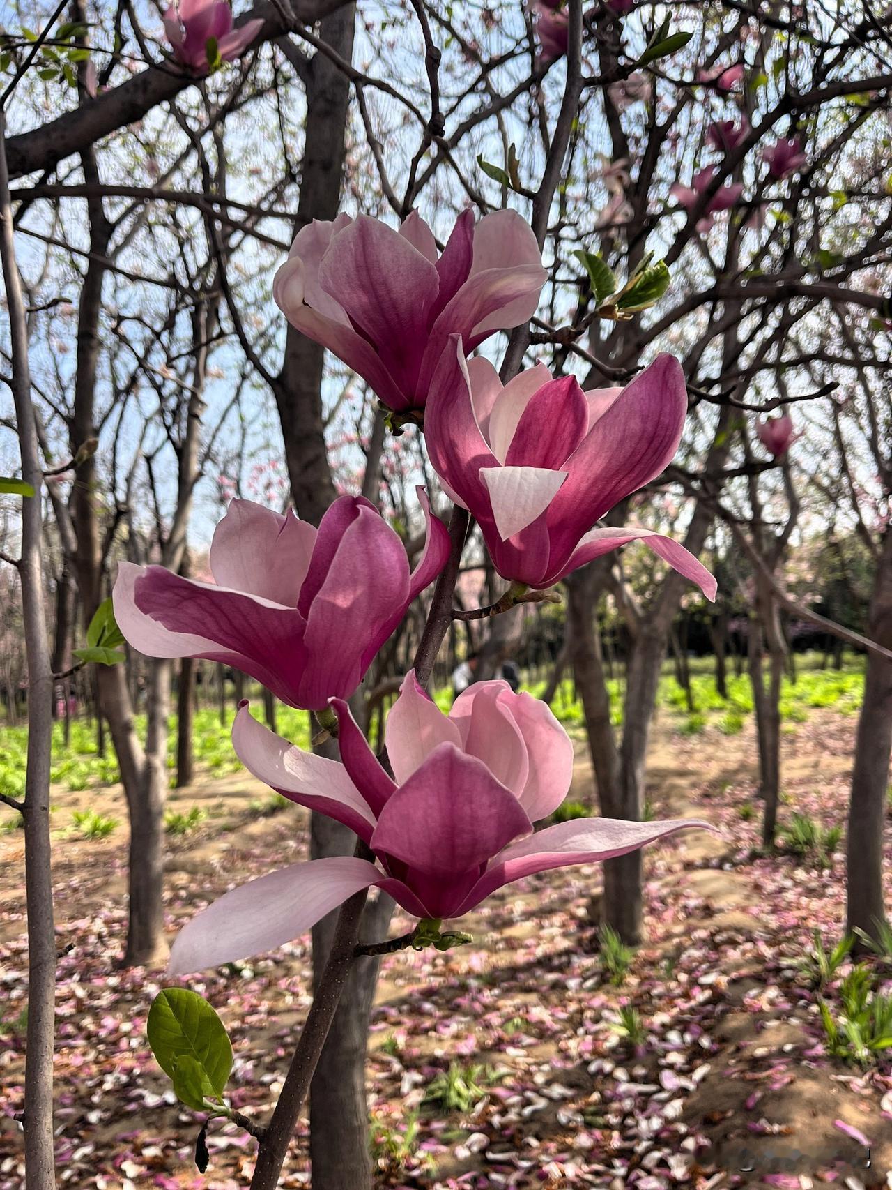 刚拍照的花卉有:桃花、玉兰花、紫荆花、樱花、蒲公英等。