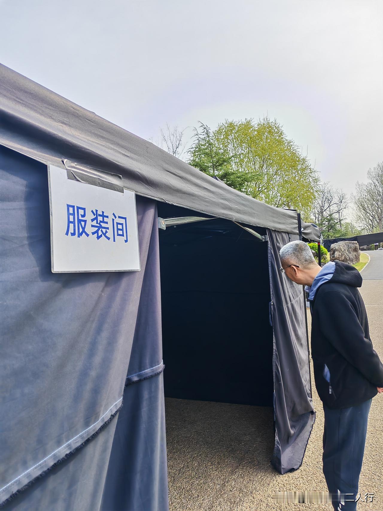 陆陆续续,有穿着八九十年代工厂工作服的演员开始入场,还有推服装的工作人员。